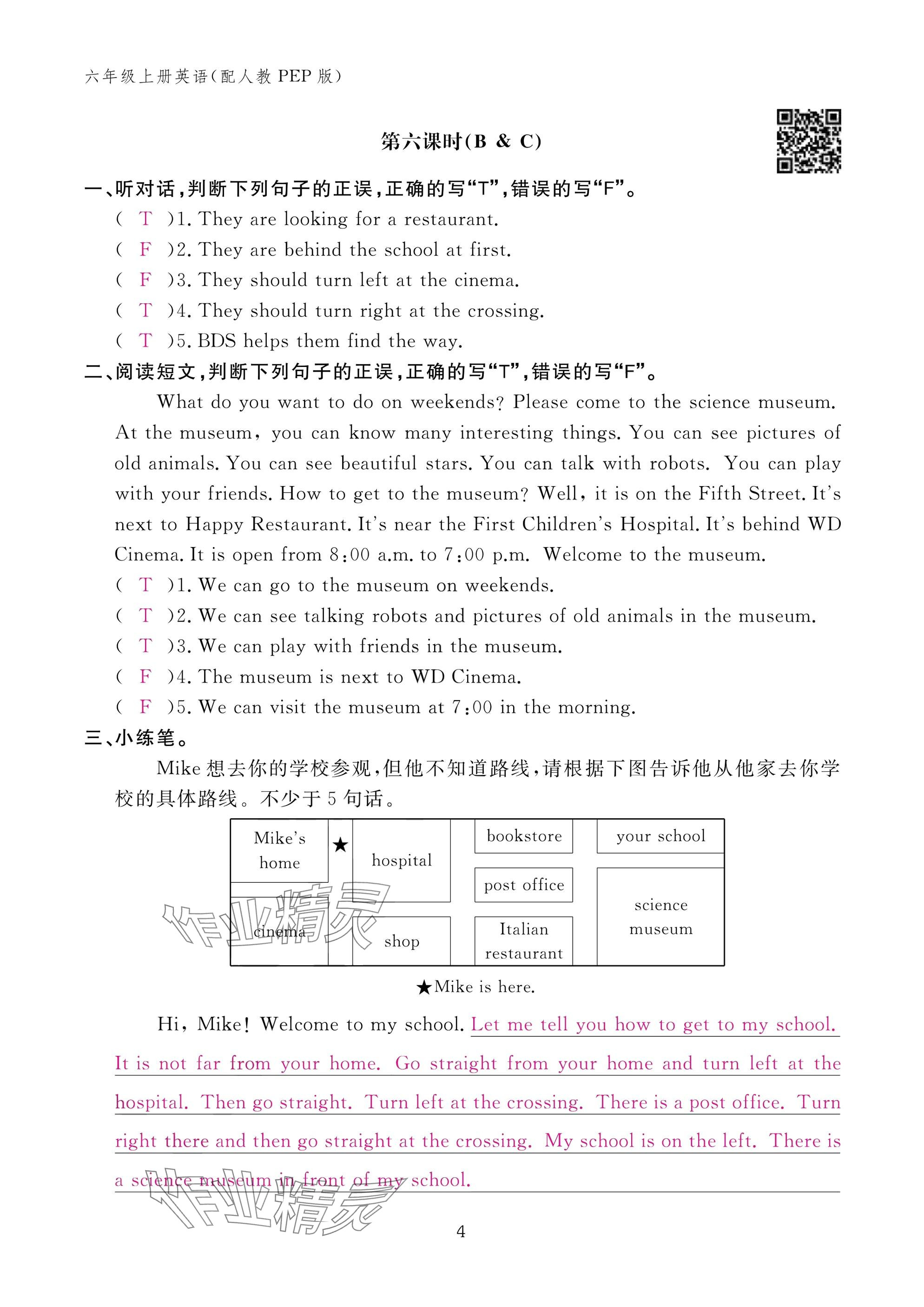 注:目前有些书本章节名称可能整理的还不是很完善,但都是按照顺序排列的,请同学们按照顺序仔细查找。练习册 2024年作业本江西教育出版社六年级英语上册人教版 答案主要是用来给同学们做完题方便对答案用的,请勿直接抄袭。