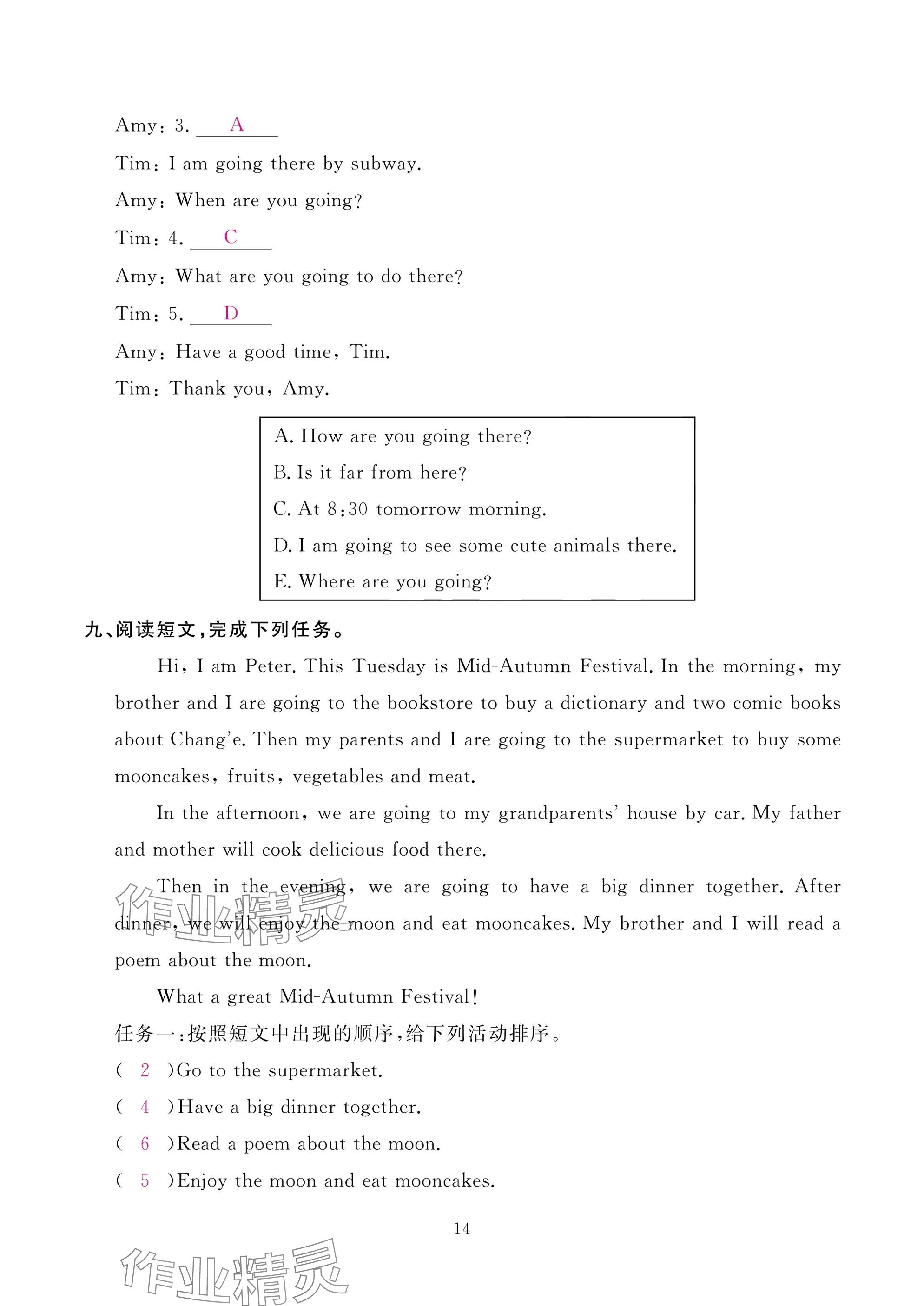 注:目前有些书本章节名称可能整理的还不是很完善,但都是按照顺序排列的,请同学们按照顺序仔细查找。练习册 2024年作业本江西教育出版社六年级英语上册人教版 答案主要是用来给同学们做完题方便对答案用的,请勿直接抄袭。