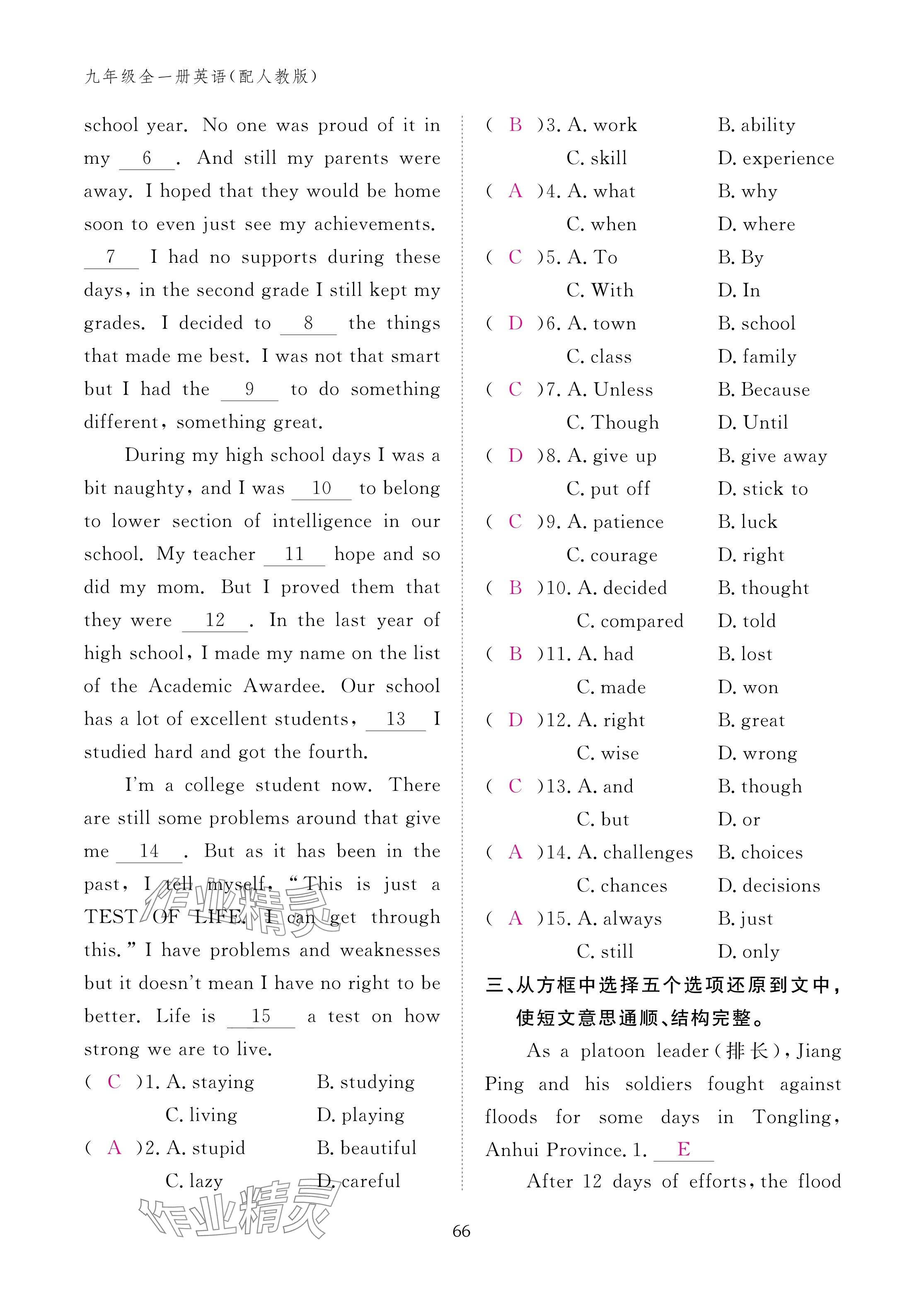 注:目前有些书本章节名称可能整理的还不是很完善,但都是按照顺序排列的,请同学们按照顺序仔细查找。练习册 2024年作业本江西教育出版社九年级英语全一册人教版 答案主要是用来给同学们做完题方便对答案用的,请勿直接抄袭。