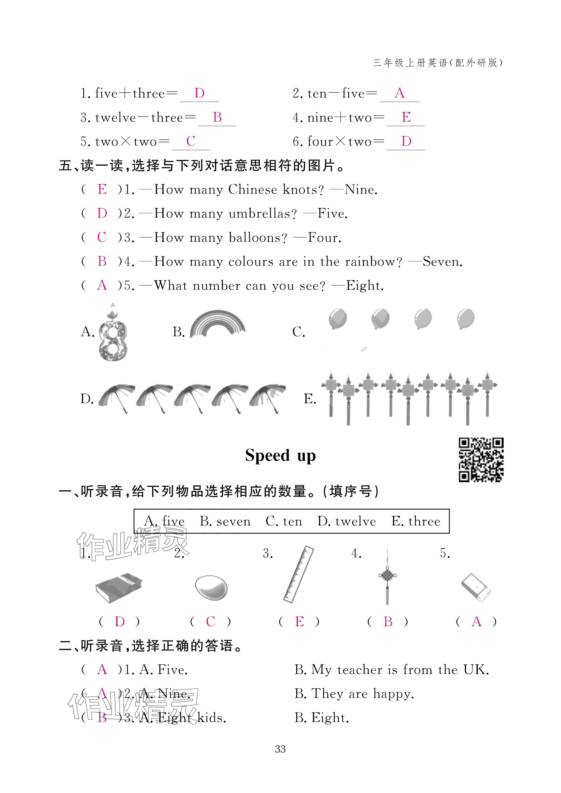 注:目前有些书本章节名称可能整理的还不是很完善,但都是按照顺序排列的,请同学们按照顺序仔细查找。练习册 2024年作业本江西教育出版社三年级英语上册外研版 答案主要是用来给同学们做完题方便对答案用的,请勿直接抄袭。