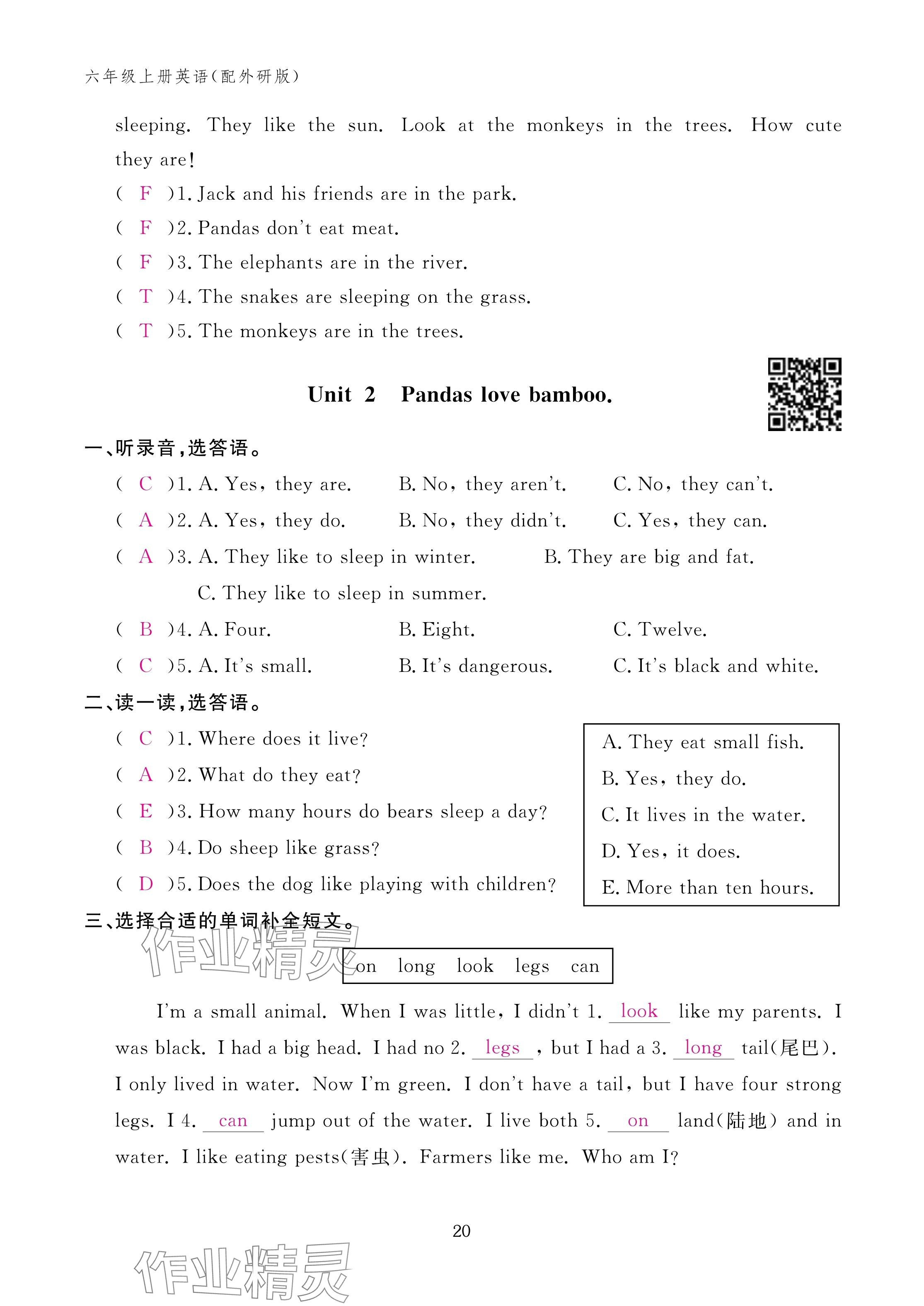 注:目前有些书本章节名称可能整理的还不是很完善,但都是按照顺序排列的,请同学们按照顺序仔细查找。练习册 2024年作业本江西教育出版社六年级英语上册外研版 答案主要是用来给同学们做完题方便对答案用的,请勿直接抄袭。