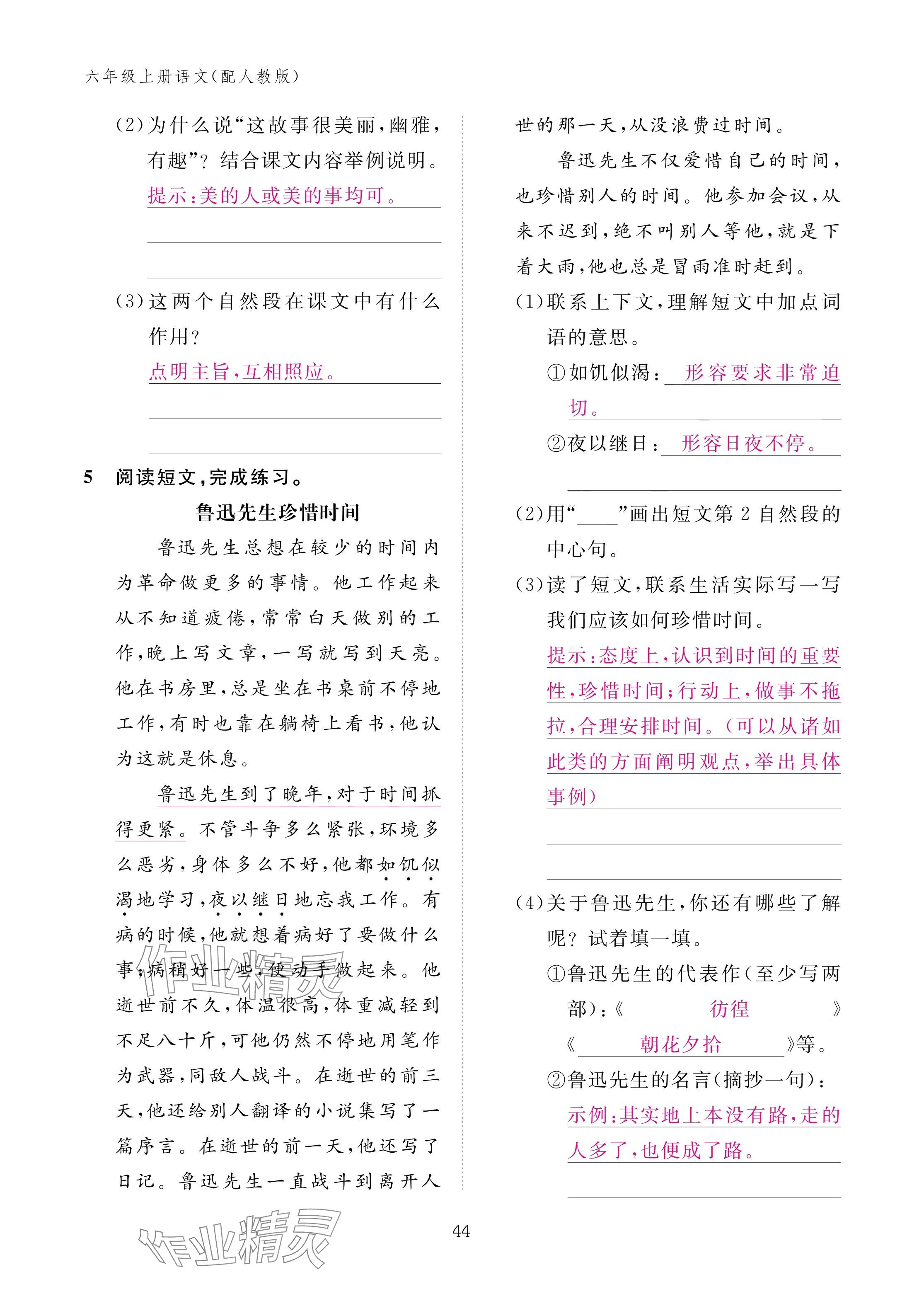 注:目前有些书本章节名称可能整理的还不是很完善,但都是按照顺序排列的,请同学们按照顺序仔细查找。练习册 2024年作业本江西教育出版社六年级语文上册人教版 答案主要是用来给同学们做完题方便对答案用的,请勿直接抄袭。