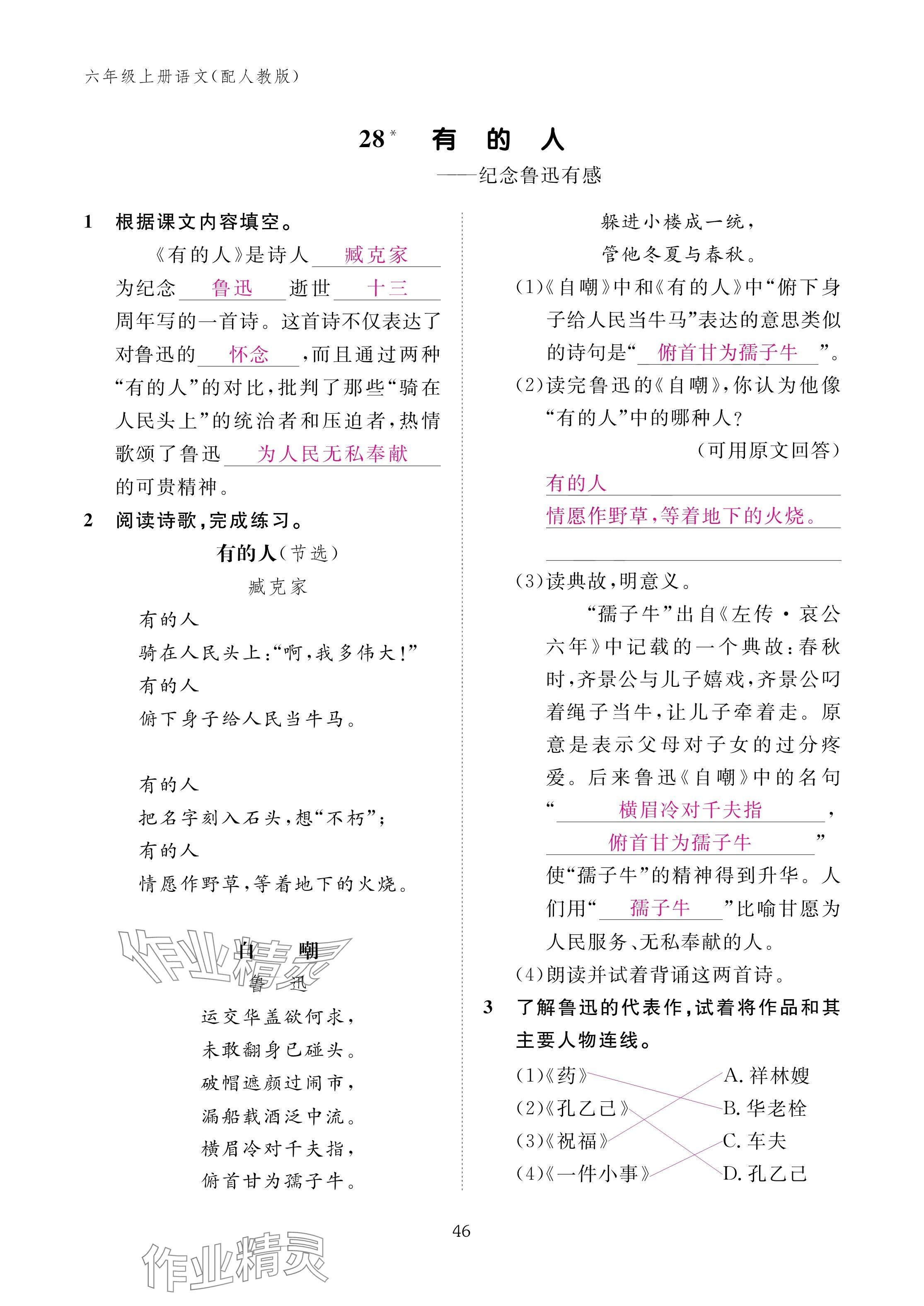 注:目前有些书本章节名称可能整理的还不是很完善,但都是按照顺序排列的,请同学们按照顺序仔细查找。练习册 2024年作业本江西教育出版社六年级语文上册人教版 答案主要是用来给同学们做完题方便对答案用的,请勿直接抄袭。