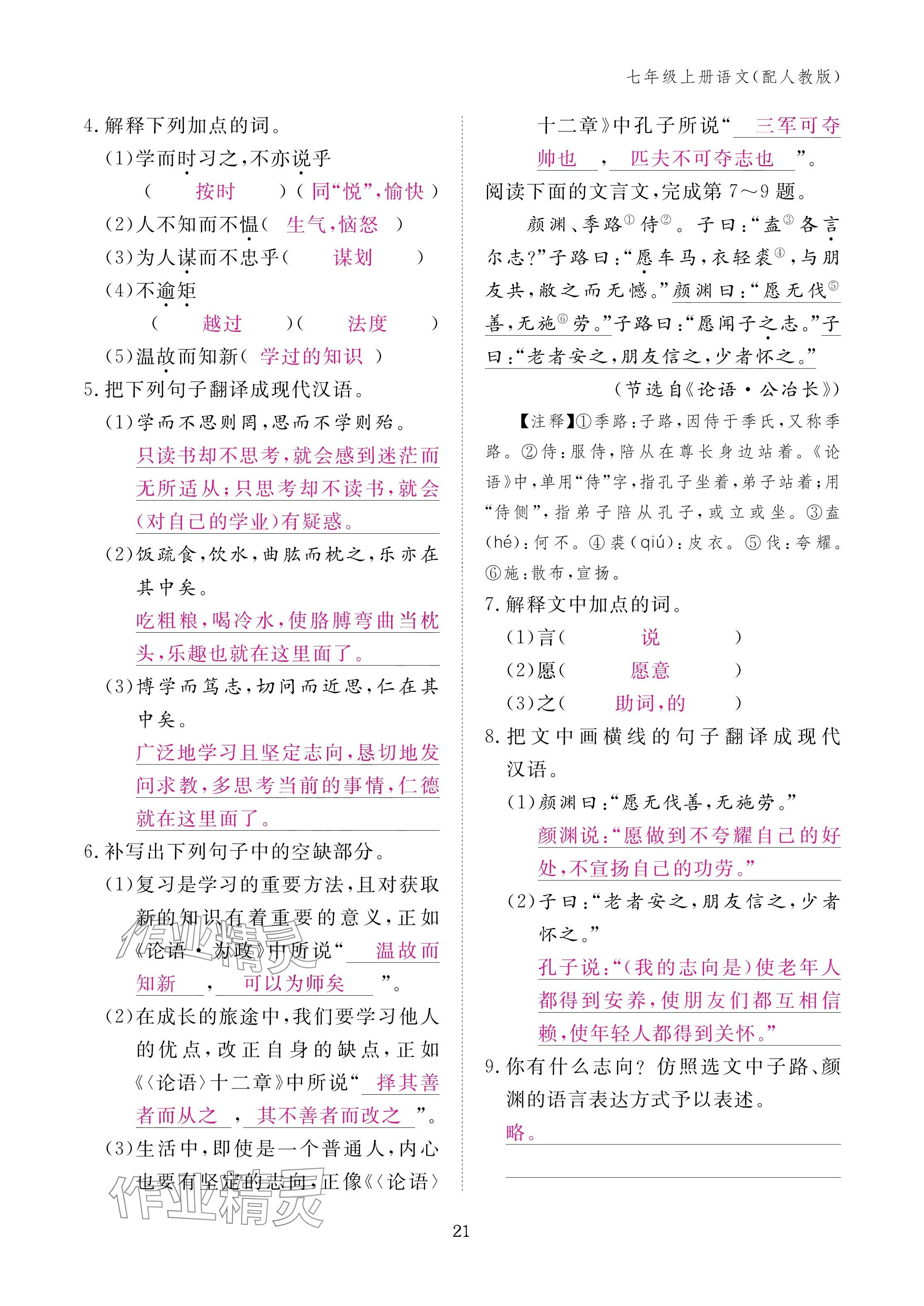 注:目前有些书本章节名称可能整理的还不是很完善,但都是按照顺序排列的,请同学们按照顺序仔细查找。练习册 2024年作业本江西教育出版社七年级语文上册人教版 答案主要是用来给同学们做完题方便对答案用的,请勿直接抄袭。
