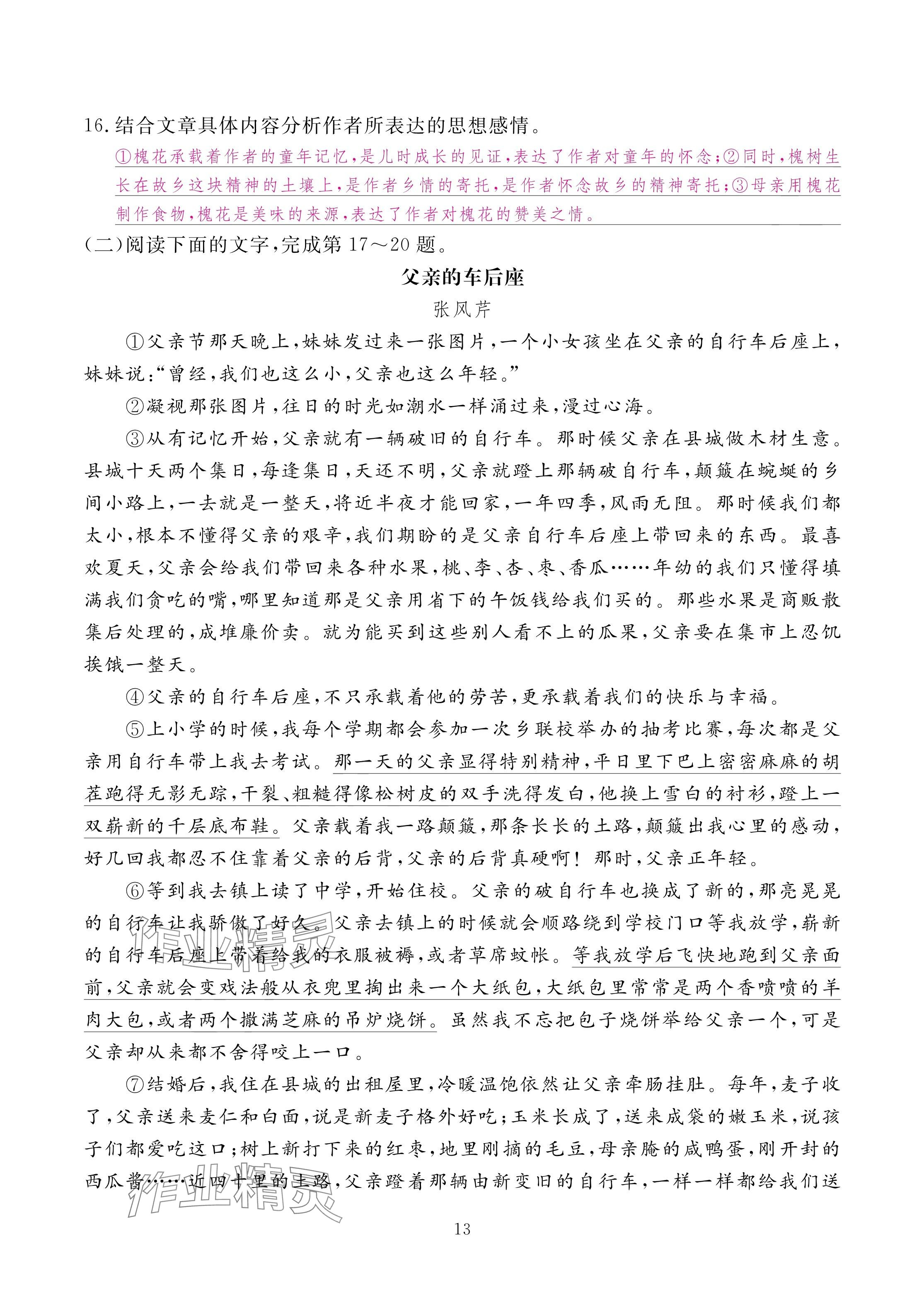 注:目前有些书本章节名称可能整理的还不是很完善,但都是按照顺序排列的,请同学们按照顺序仔细查找。练习册 2024年作业本江西教育出版社七年级语文上册人教版 答案主要是用来给同学们做完题方便对答案用的,请勿直接抄袭。