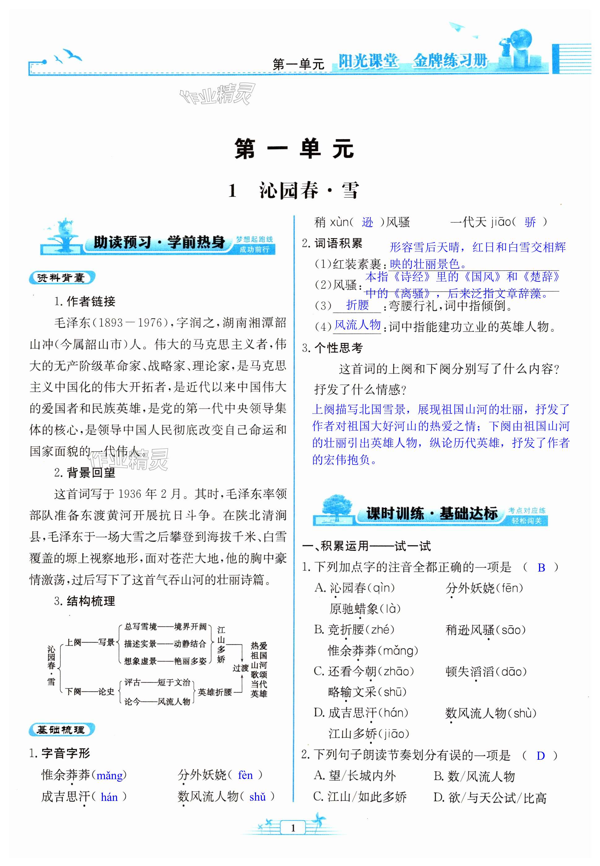 注:目前有些书本章节名称可能整理的还不是很完善,但都是按照顺序排列的,请同学们按照顺序仔细查找。练习册 2024年阳光课堂金牌练习册九年级语文上册人教版 答案主要是用来给同学们做完题方便对答案用的,请勿直接抄袭。