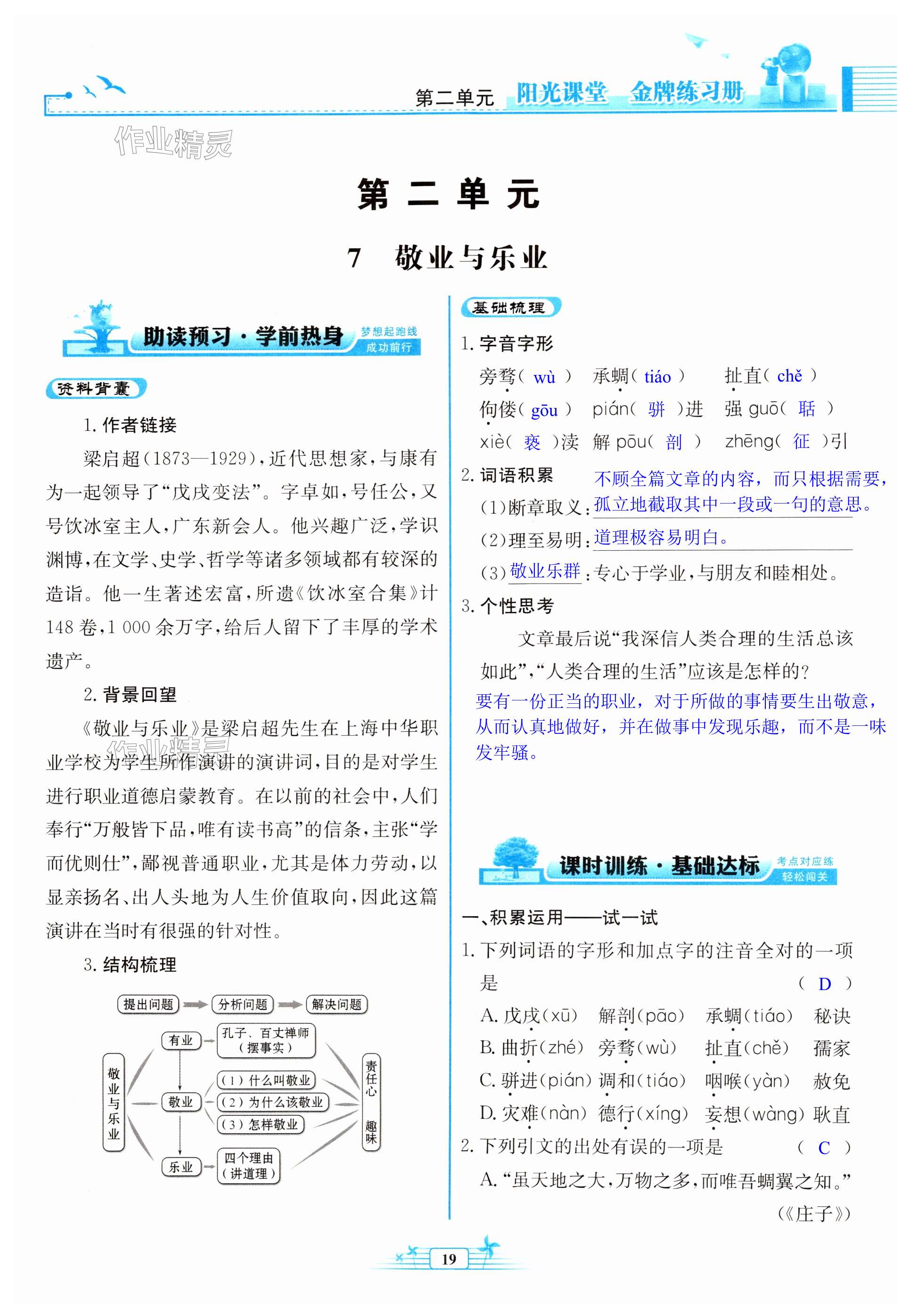 注:目前有些书本章节名称可能整理的还不是很完善,但都是按照顺序排列的,请同学们按照顺序仔细查找。练习册 2024年阳光课堂金牌练习册九年级语文上册人教版 答案主要是用来给同学们做完题方便对答案用的,请勿直接抄袭。