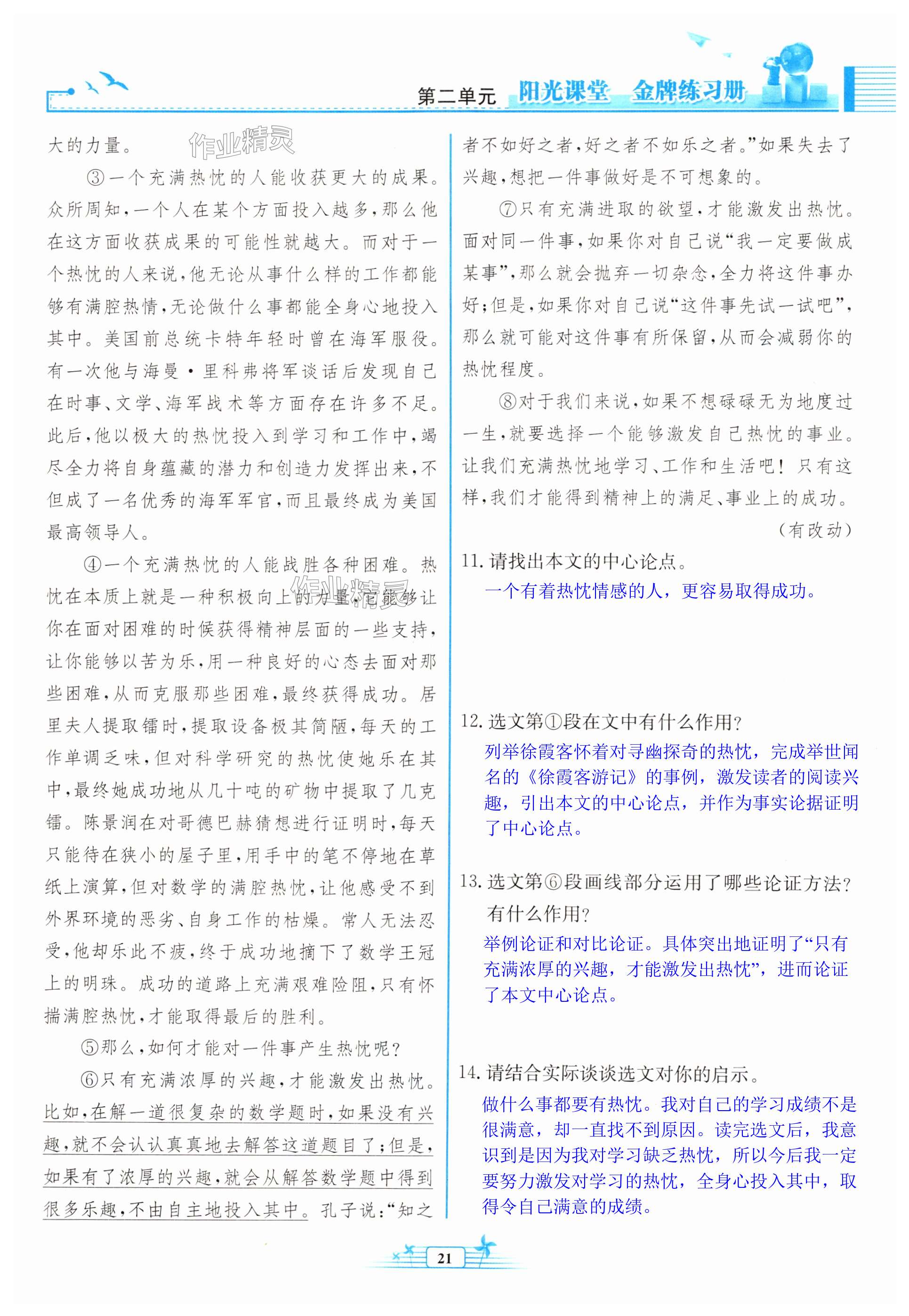 注:目前有些书本章节名称可能整理的还不是很完善,但都是按照顺序排列的,请同学们按照顺序仔细查找。练习册 2024年阳光课堂金牌练习册九年级语文上册人教版 答案主要是用来给同学们做完题方便对答案用的,请勿直接抄袭。