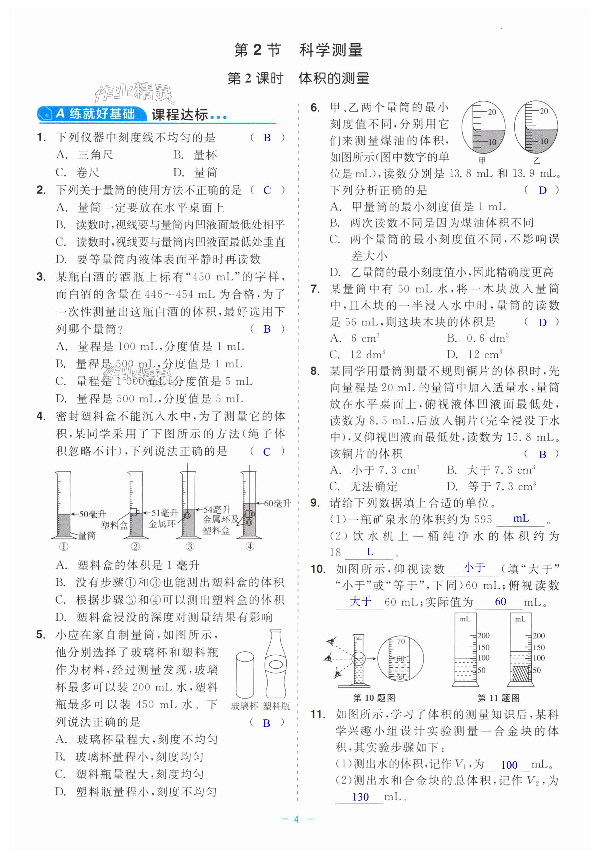 注:目前有些书本章节名称可能整理的还不是很完善,但都是按照顺序排列的,请同学们按照顺序仔细查找。练习册 2024年精彩三年就练这一本七年级科学上册浙教版 答案主要是用来给同学们做完题方便对答案用的,请勿直接抄袭。