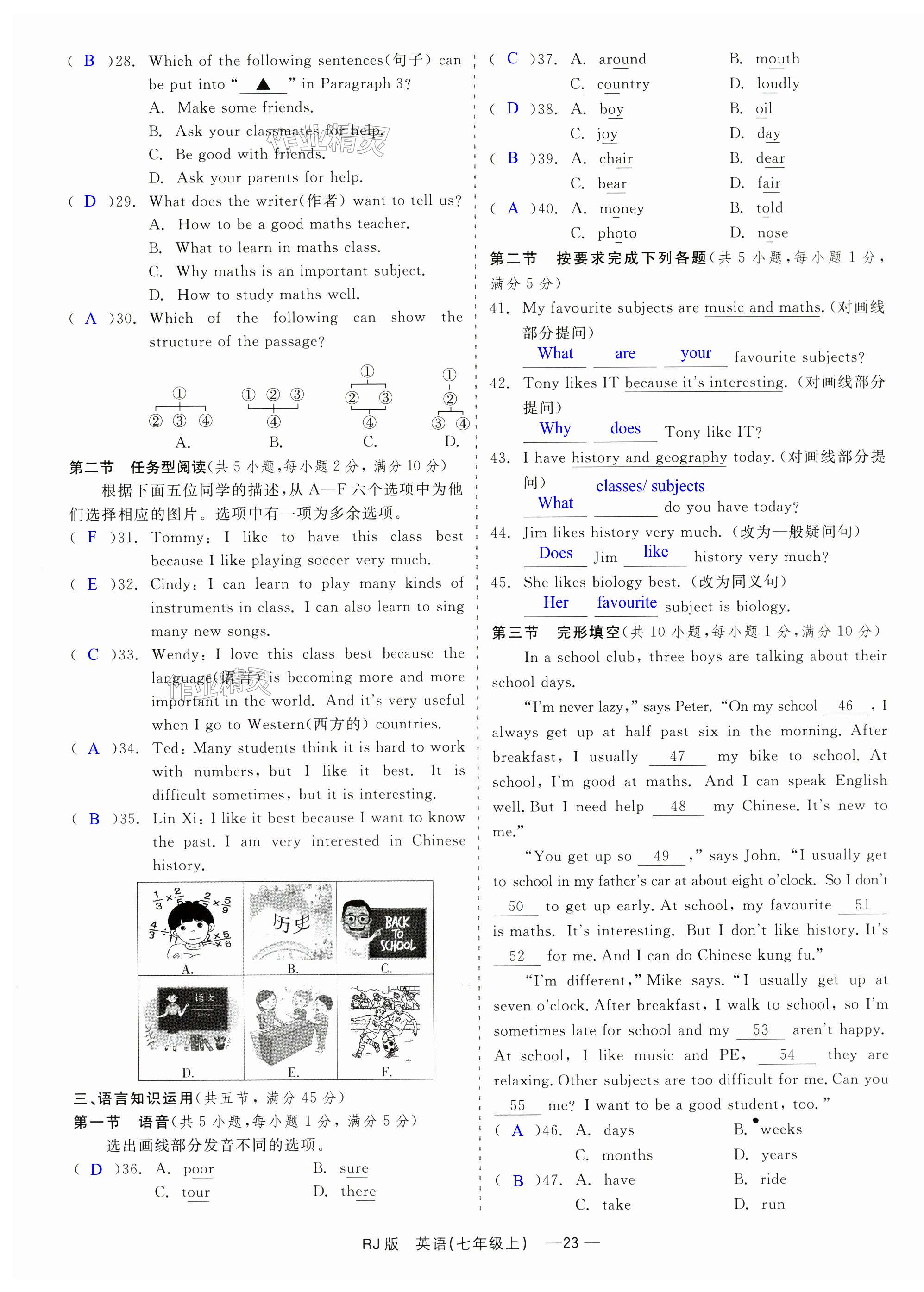 注:目前有些书本章节名称可能整理的还不是很完善,但都是按照顺序排列的,请同学们按照顺序仔细查找。练习册 2024年精彩练习就练这一本七年级英语上册人教版 答案主要是用来给同学们做完题方便对答案用的,请勿直接抄袭。