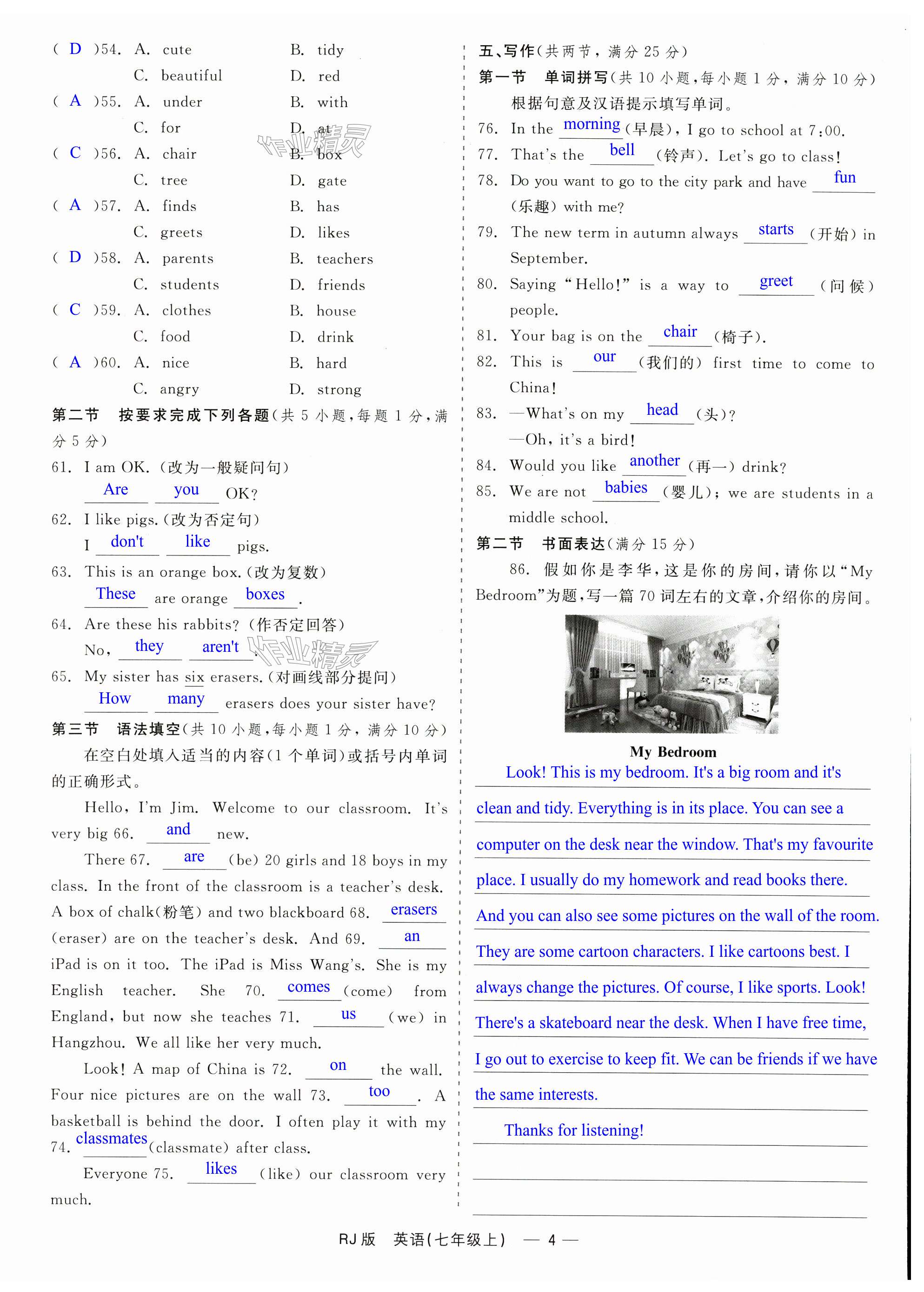 注:目前有些书本章节名称可能整理的还不是很完善,但都是按照顺序排列的,请同学们按照顺序仔细查找。练习册 2024年精彩练习就练这一本七年级英语上册人教版 答案主要是用来给同学们做完题方便对答案用的,请勿直接抄袭。