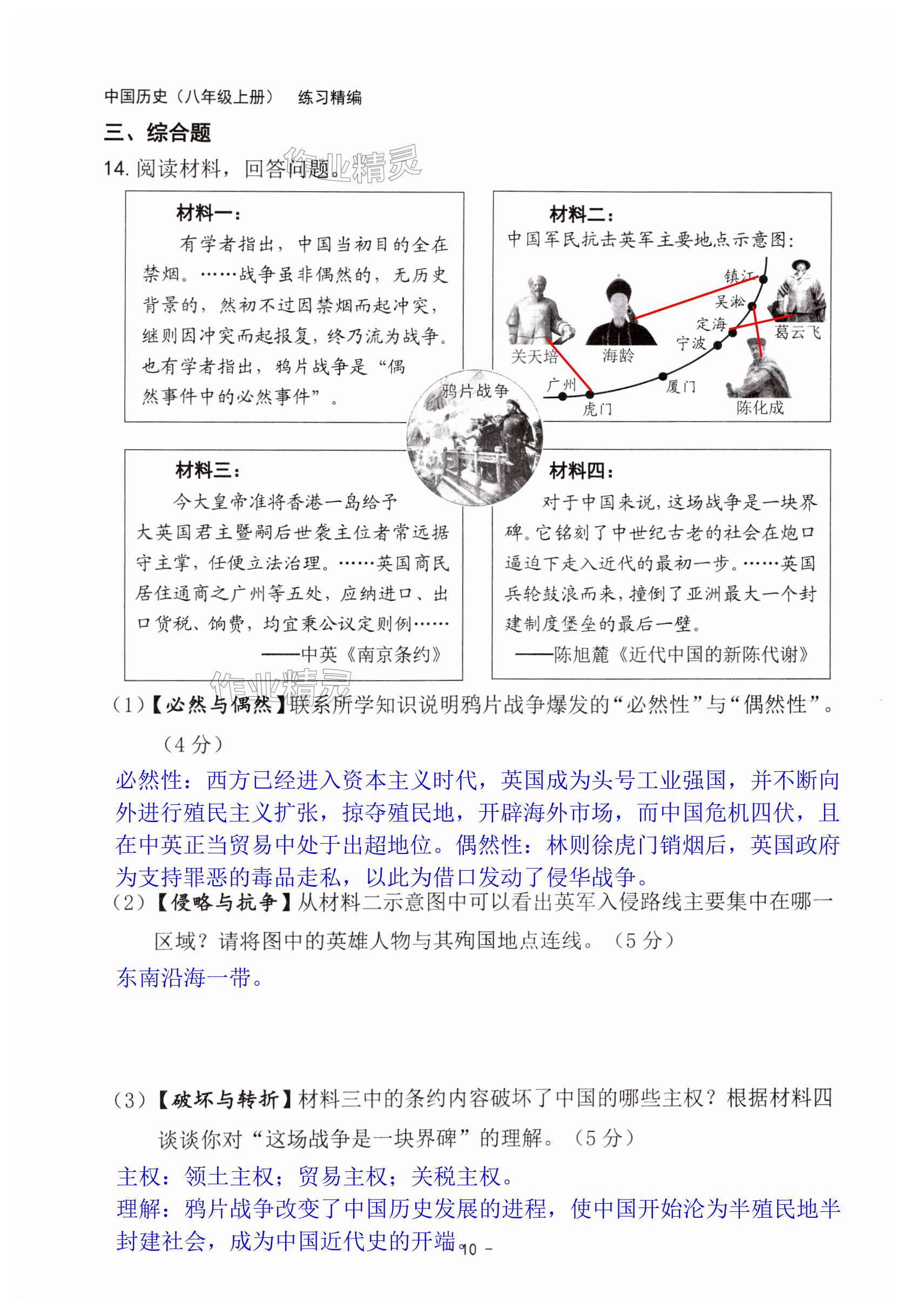 注:目前有些书本章节名称可能整理的还不是很完善,但都是按照顺序排列的,请同学们按照顺序仔细查找。练习册 2024年练习精编八年级历史上册人教版 答案主要是用来给同学们做完题方便对答案用的,请勿直接抄袭。
