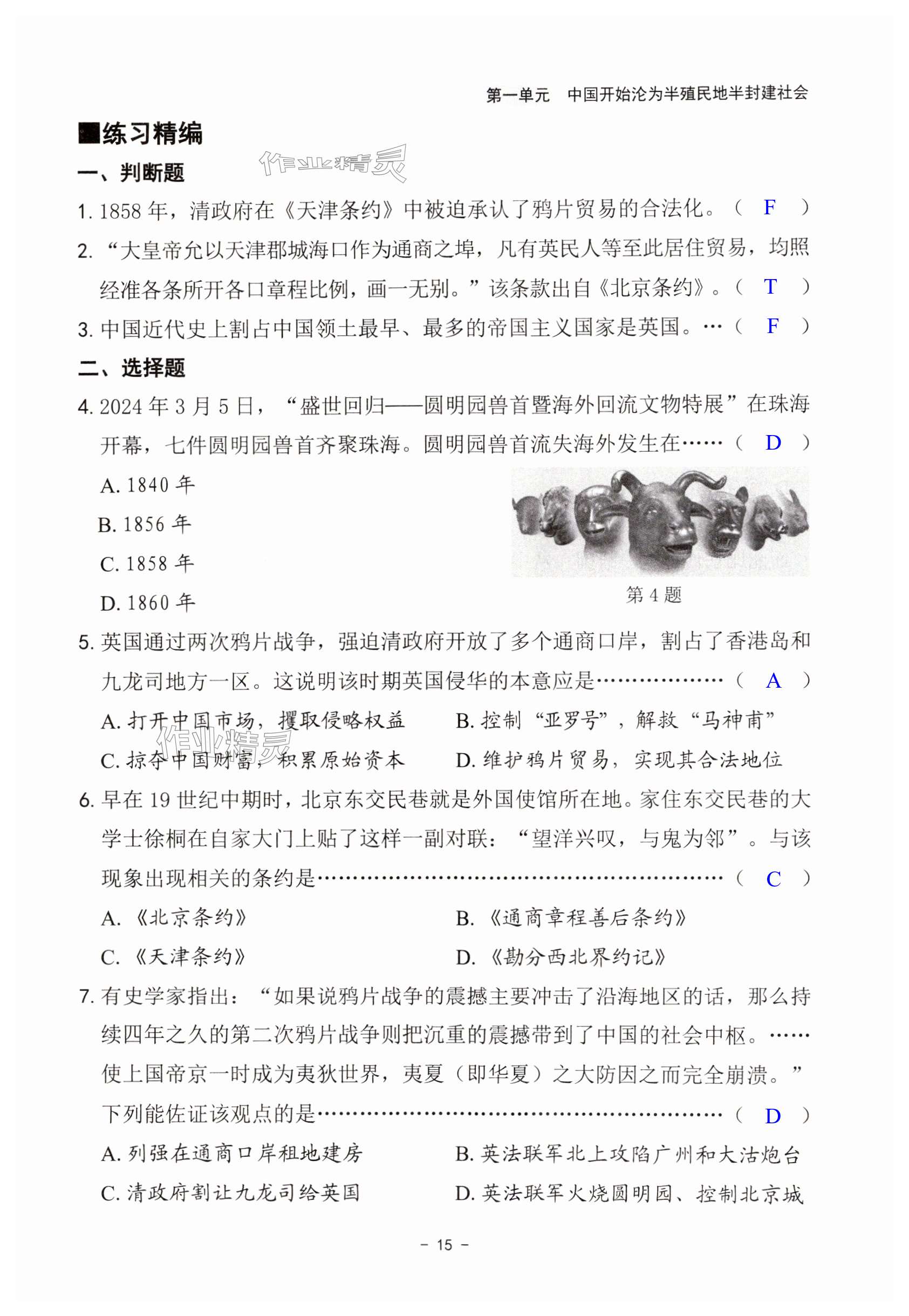 注:目前有些书本章节名称可能整理的还不是很完善,但都是按照顺序排列的,请同学们按照顺序仔细查找。练习册 2024年练习精编八年级历史上册人教版 答案主要是用来给同学们做完题方便对答案用的,请勿直接抄袭。