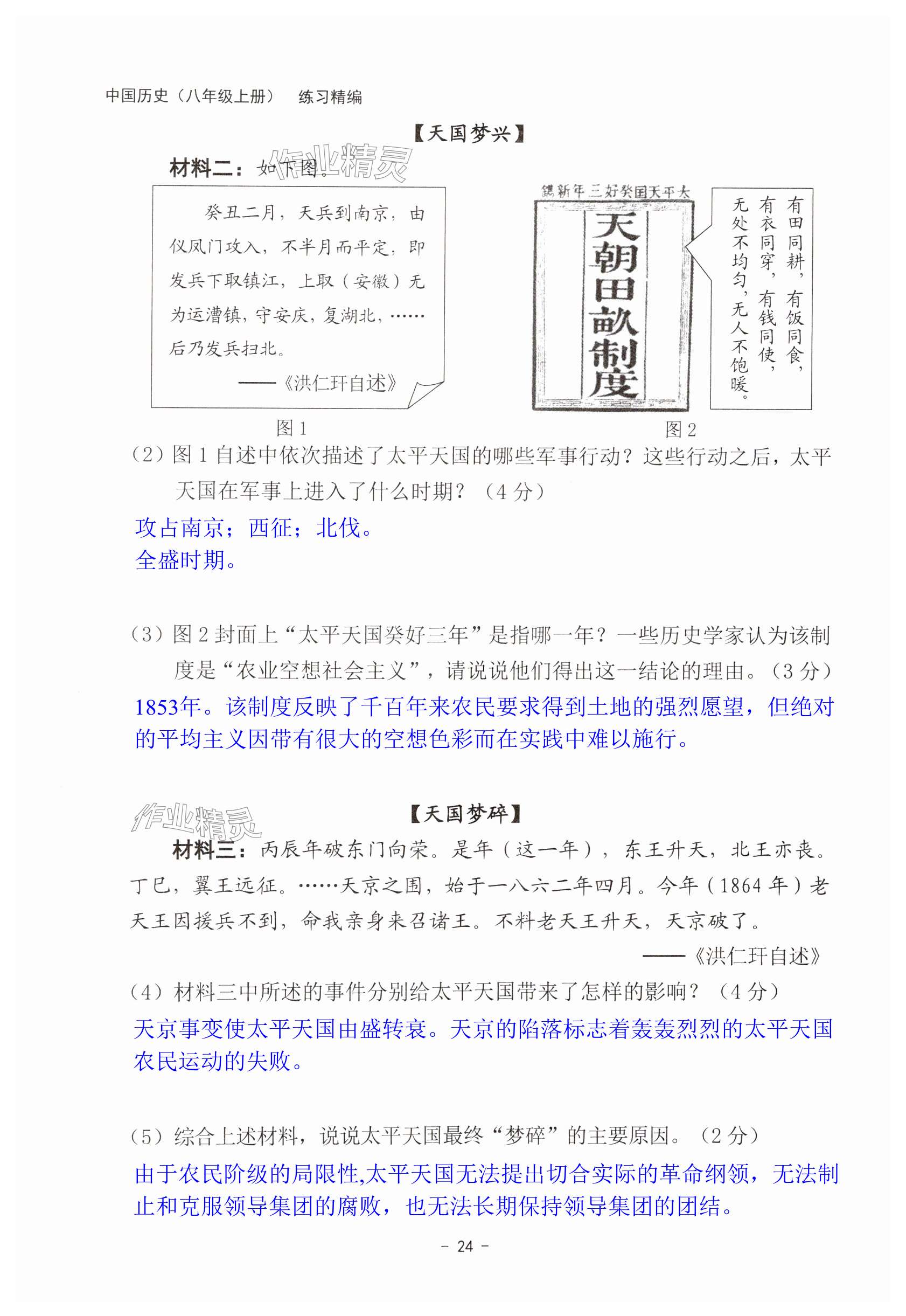 注:目前有些书本章节名称可能整理的还不是很完善,但都是按照顺序排列的,请同学们按照顺序仔细查找。练习册 2024年练习精编八年级历史上册人教版 答案主要是用来给同学们做完题方便对答案用的,请勿直接抄袭。