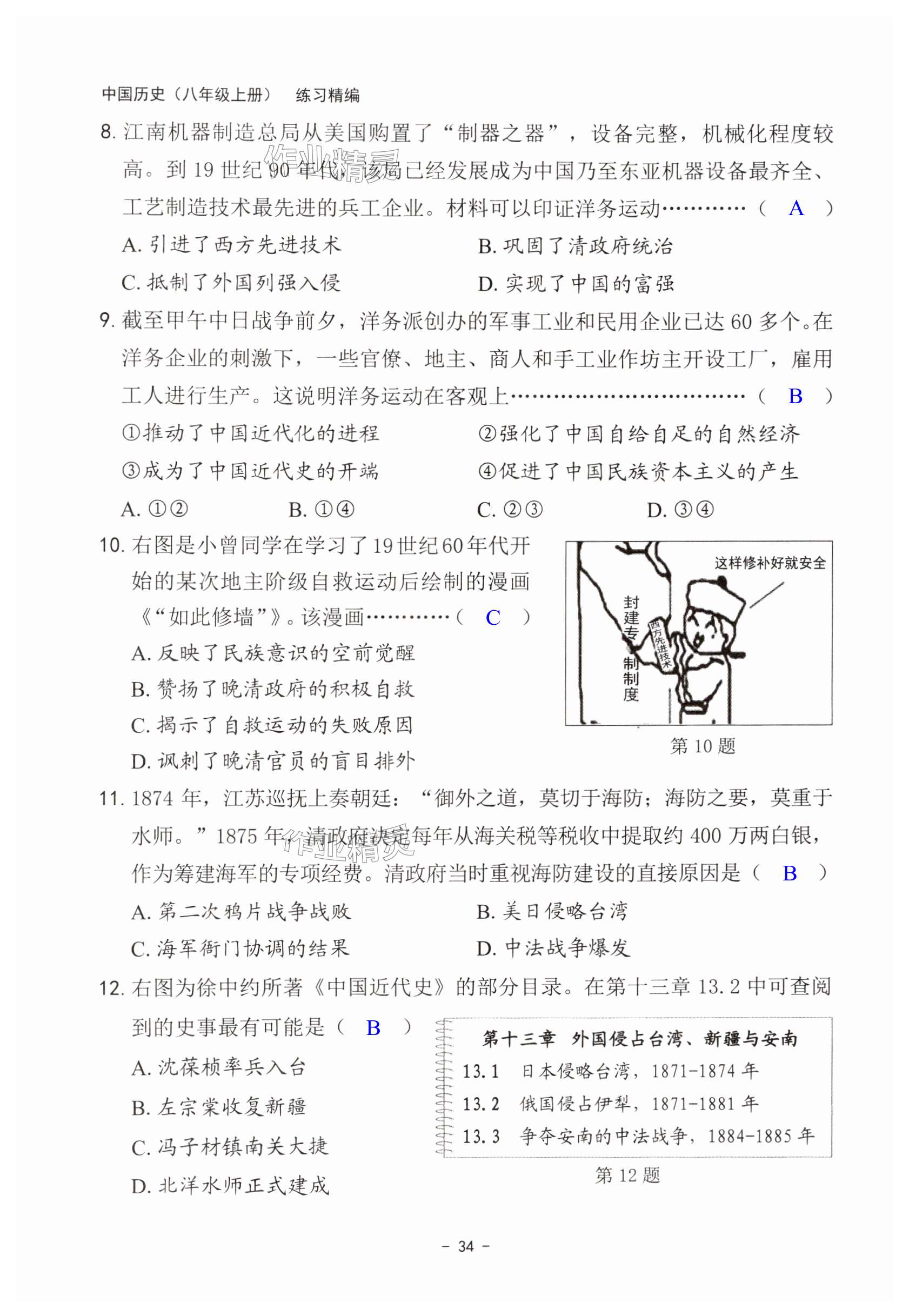 注:目前有些书本章节名称可能整理的还不是很完善,但都是按照顺序排列的,请同学们按照顺序仔细查找。练习册 2024年练习精编八年级历史上册人教版 答案主要是用来给同学们做完题方便对答案用的,请勿直接抄袭。