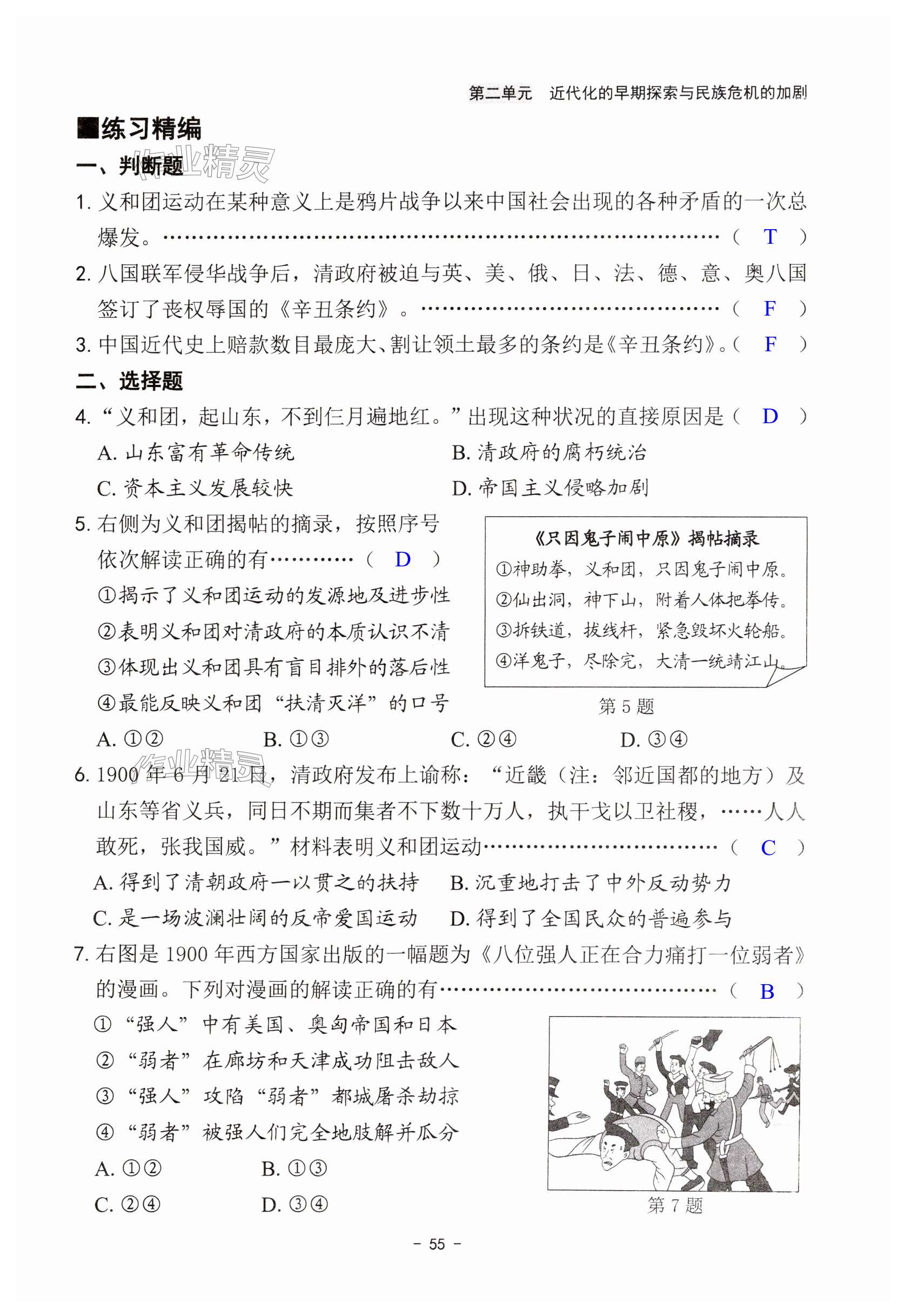 注:目前有些书本章节名称可能整理的还不是很完善,但都是按照顺序排列的,请同学们按照顺序仔细查找。练习册 2024年练习精编八年级历史上册人教版 答案主要是用来给同学们做完题方便对答案用的,请勿直接抄袭。