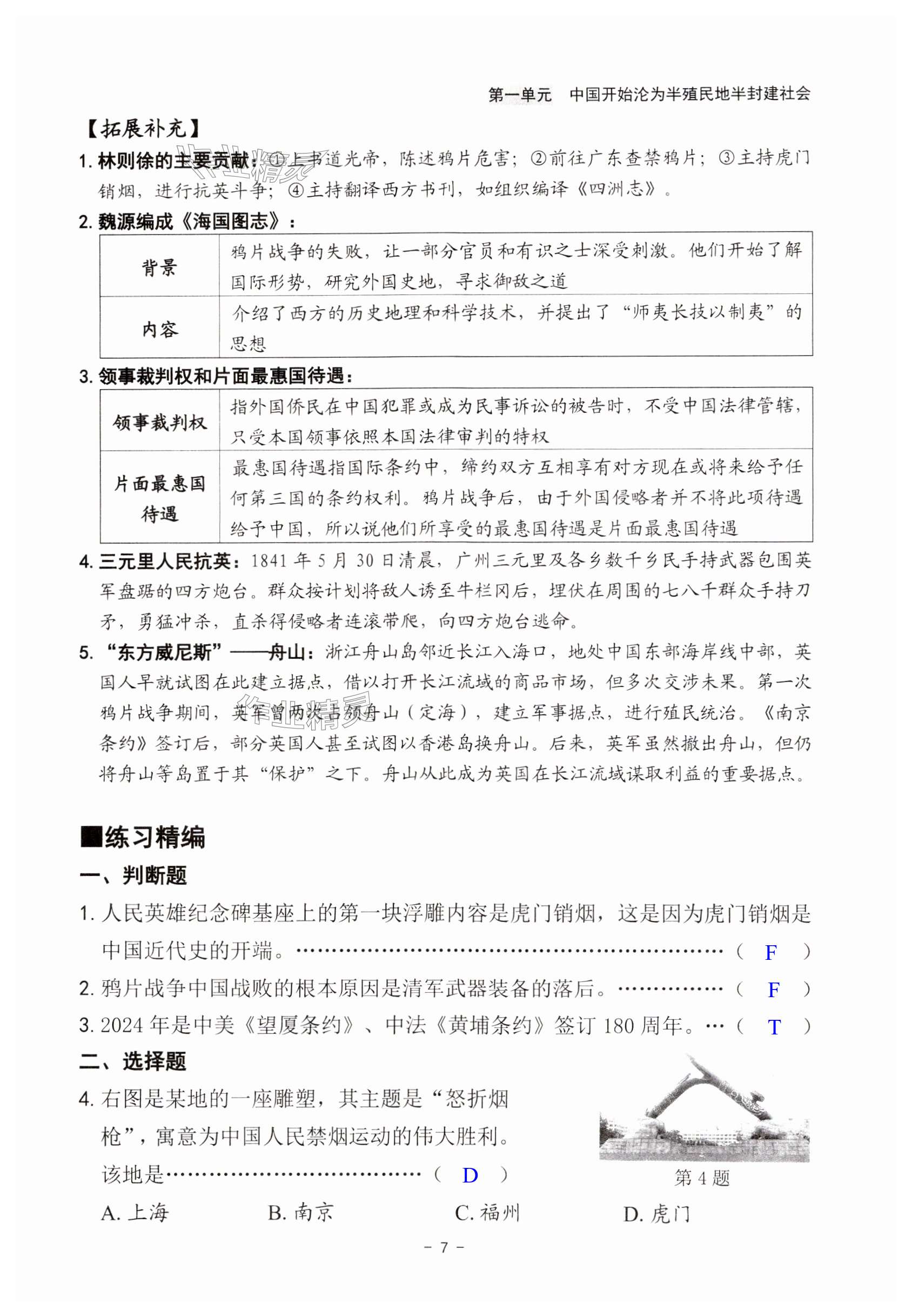 注:目前有些书本章节名称可能整理的还不是很完善,但都是按照顺序排列的,请同学们按照顺序仔细查找。练习册 2024年练习精编八年级历史上册人教版 答案主要是用来给同学们做完题方便对答案用的,请勿直接抄袭。