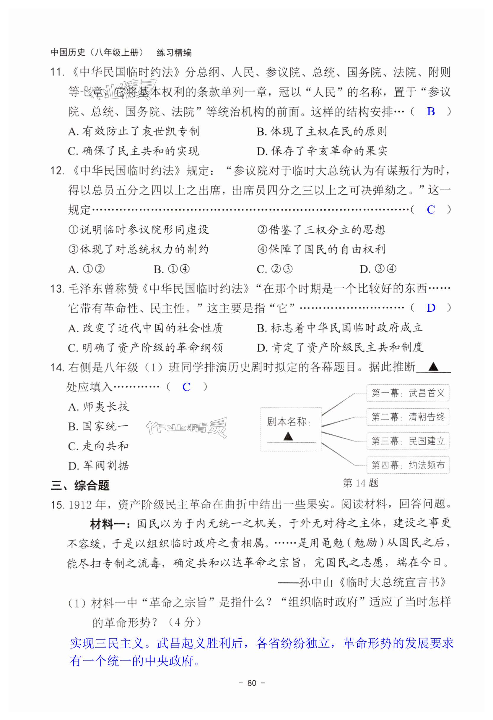 注:目前有些书本章节名称可能整理的还不是很完善,但都是按照顺序排列的,请同学们按照顺序仔细查找。练习册 2024年练习精编八年级历史上册人教版 答案主要是用来给同学们做完题方便对答案用的,请勿直接抄袭。