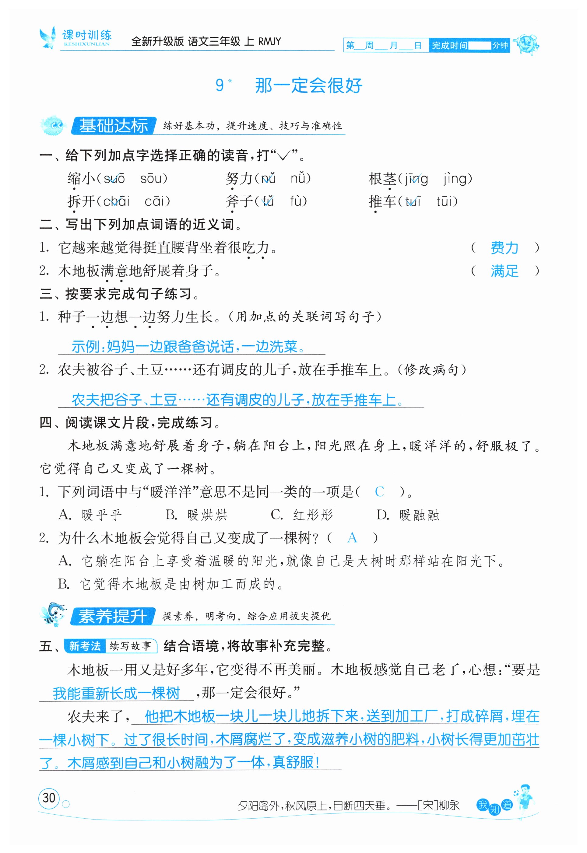 注:目前有些书本章节名称可能整理的还不是很完善,但都是按照顺序排列的,请同学们按照顺序仔细查找。练习册 2024年课时训练江苏人民出版社三年级语文上册人教版 答案主要是用来给同学们做完题方便对答案用的,请勿直接抄袭。