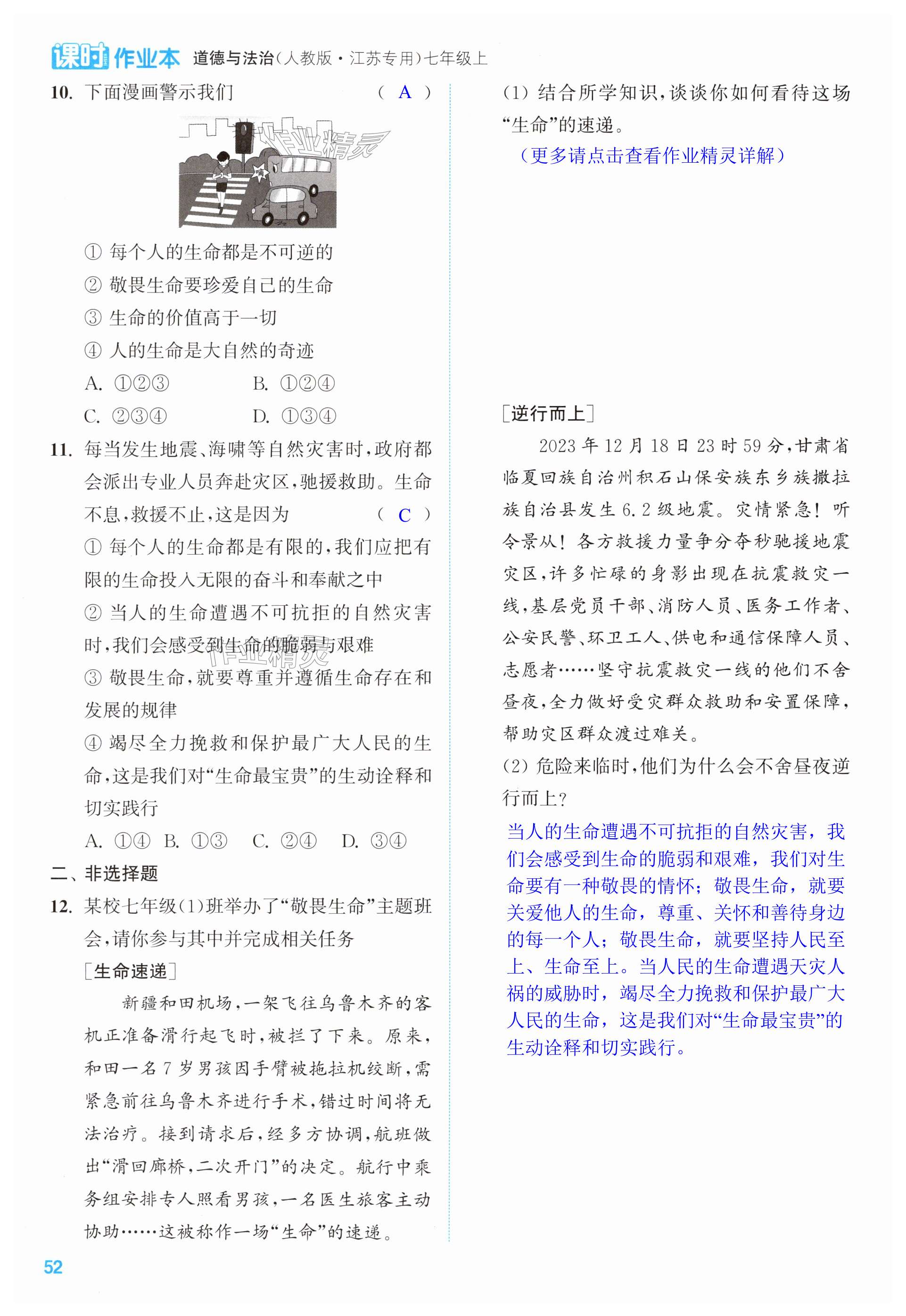 注:目前有些书本章节名称可能整理的还不是很完善,但都是按照顺序排列的,请同学们按照顺序仔细查找。练习册 2024年通城学典课时作业本七年级道德与法治上册人教版江苏专版 答案主要是用来给同学们做完题方便对答案用的,请勿直接抄袭。