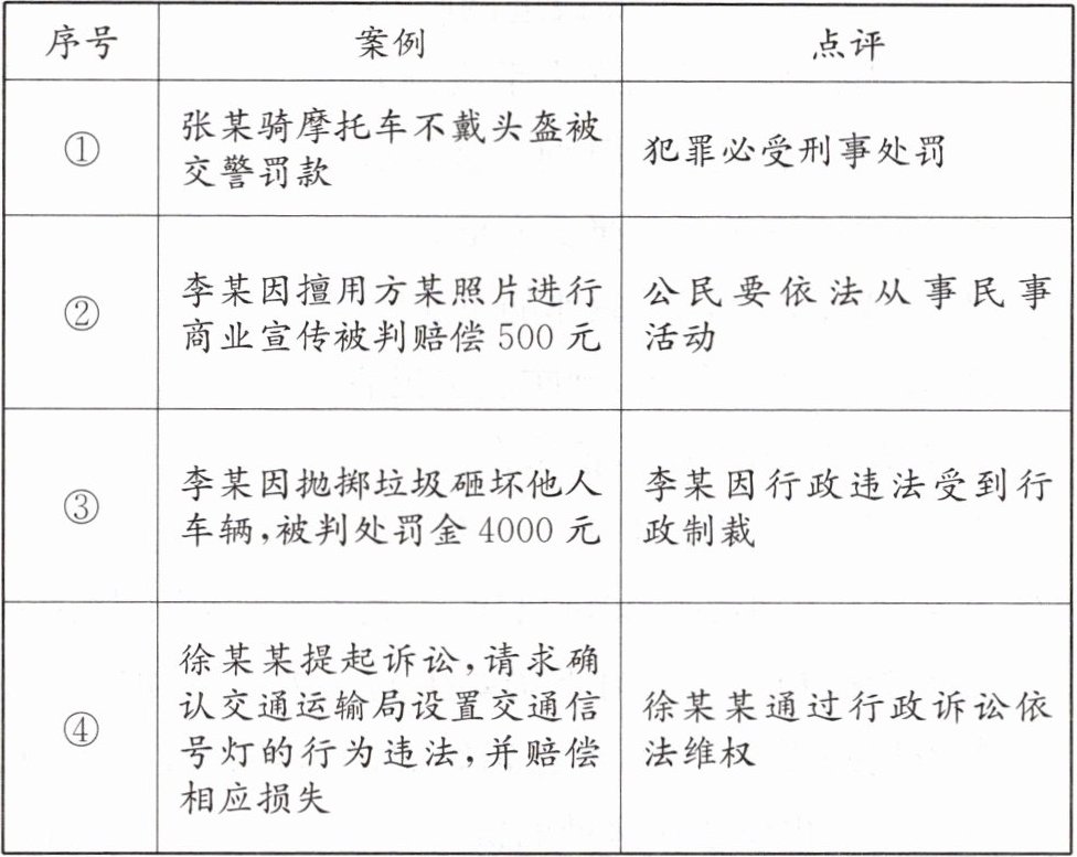 | ② | 李某因擅用方某照片进行商业宣传被判赔偿500元 | 公民要依法从事民事活动 |