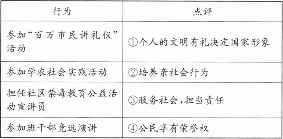 4. 下表中对初中生小雨同学行为的点评,正确的是( )