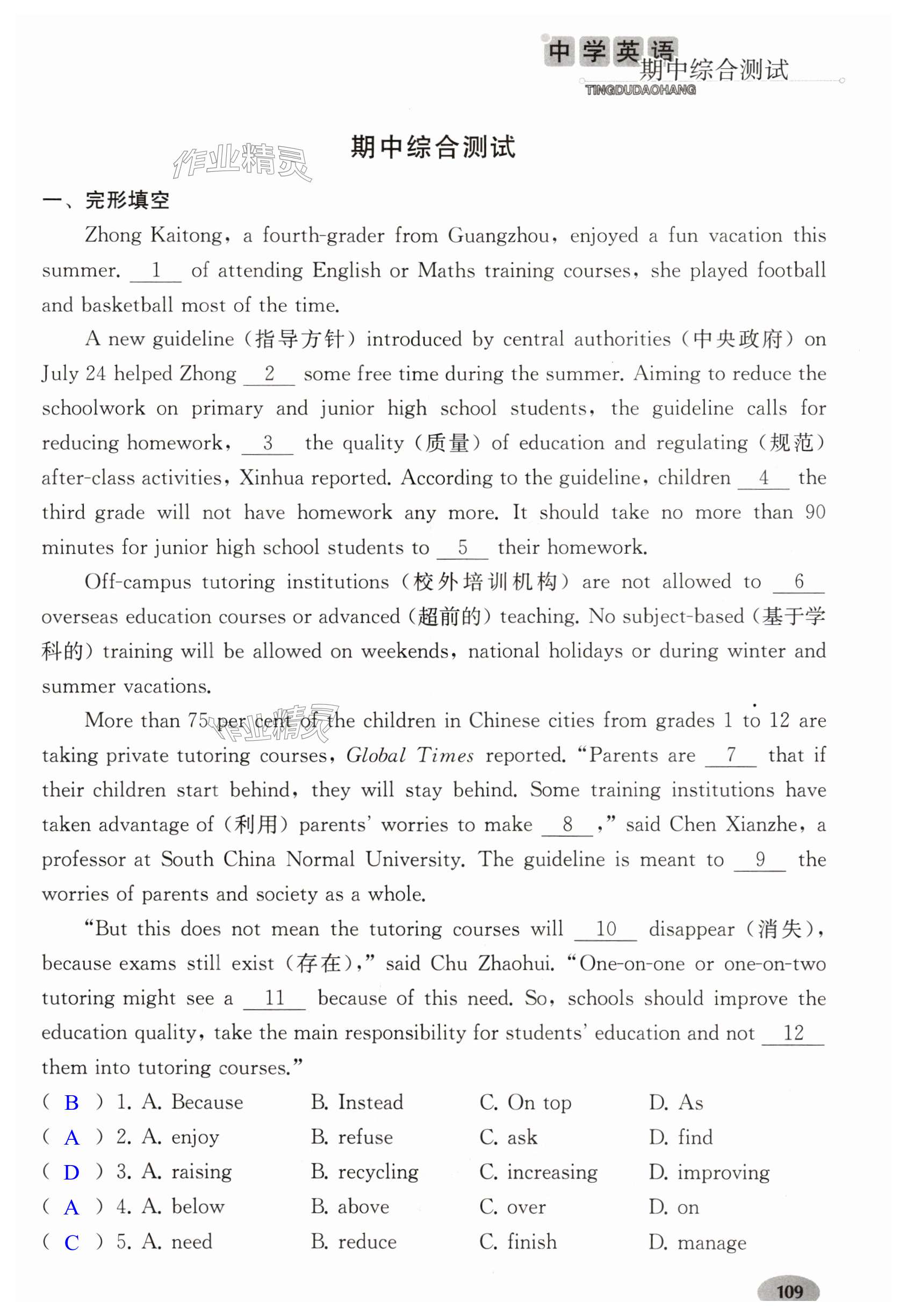 注:目前有些书本章节名称可能整理的还不是很完善,但都是按照顺序排列的,请同学们按照顺序仔细查找。练习册 2024年中学英语听读导航九年级上册译林版 答案主要是用来给同学们做完题方便对答案用的,请勿直接抄袭。