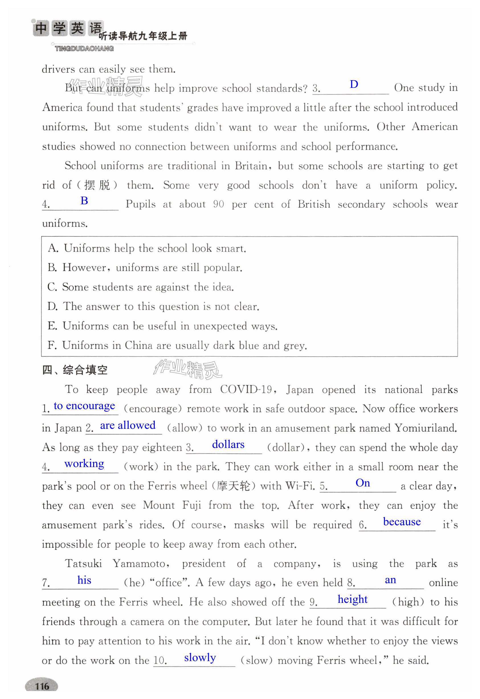 注:目前有些书本章节名称可能整理的还不是很完善,但都是按照顺序排列的,请同学们按照顺序仔细查找。练习册 2024年中学英语听读导航九年级上册译林版 答案主要是用来给同学们做完题方便对答案用的,请勿直接抄袭。