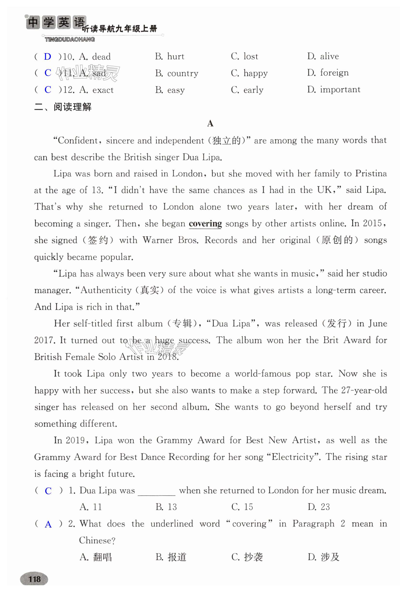 注:目前有些书本章节名称可能整理的还不是很完善,但都是按照顺序排列的,请同学们按照顺序仔细查找。练习册 2024年中学英语听读导航九年级上册译林版 答案主要是用来给同学们做完题方便对答案用的,请勿直接抄袭。