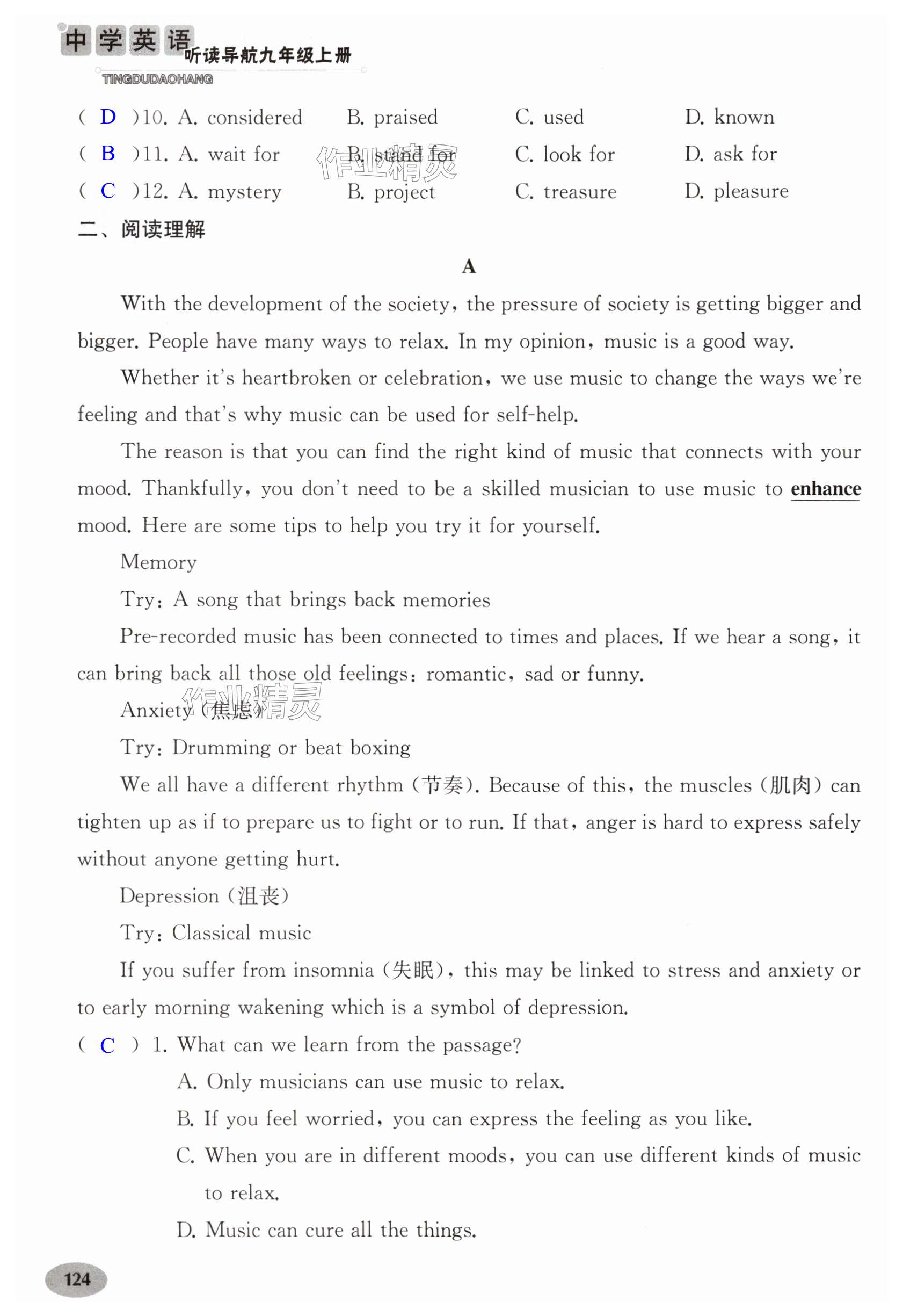 注:目前有些书本章节名称可能整理的还不是很完善,但都是按照顺序排列的,请同学们按照顺序仔细查找。练习册 2024年中学英语听读导航九年级上册译林版 答案主要是用来给同学们做完题方便对答案用的,请勿直接抄袭。