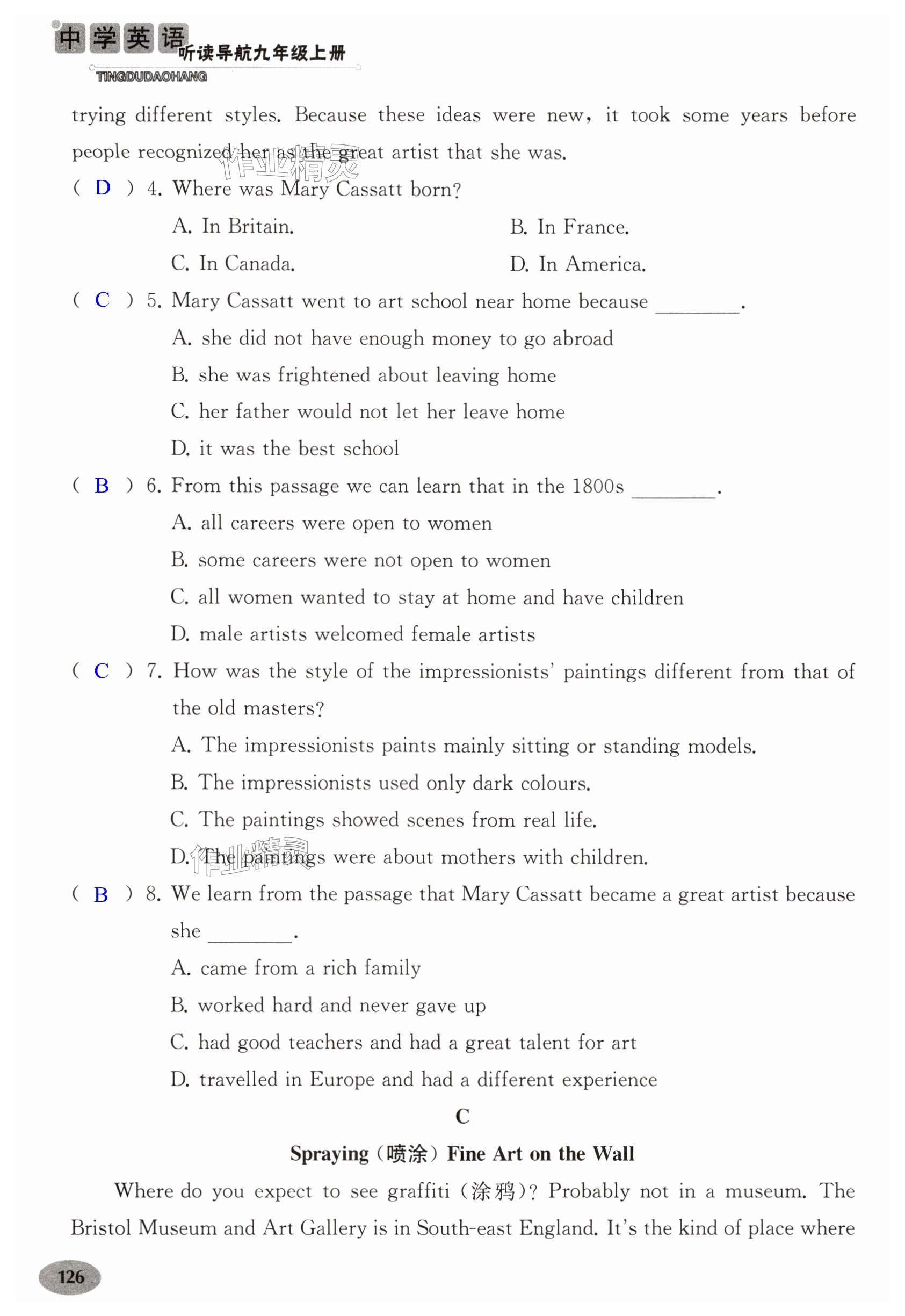 注:目前有些书本章节名称可能整理的还不是很完善,但都是按照顺序排列的,请同学们按照顺序仔细查找。练习册 2024年中学英语听读导航九年级上册译林版 答案主要是用来给同学们做完题方便对答案用的,请勿直接抄袭。