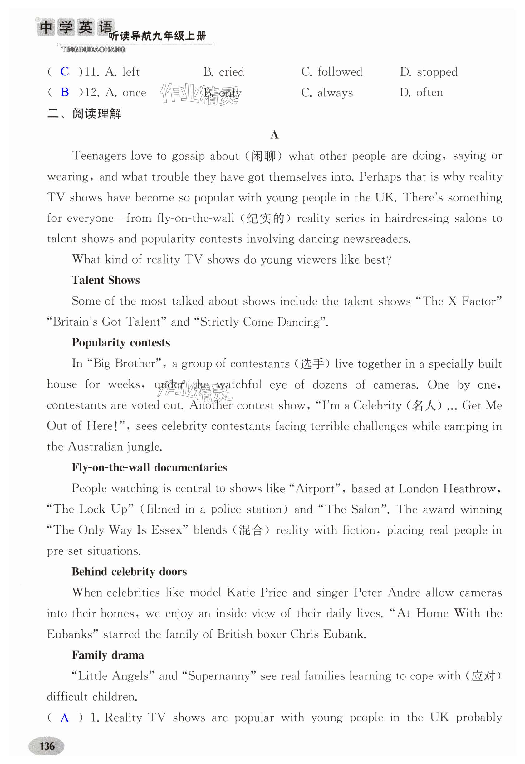注:目前有些书本章节名称可能整理的还不是很完善,但都是按照顺序排列的,请同学们按照顺序仔细查找。练习册 2024年中学英语听读导航九年级上册译林版 答案主要是用来给同学们做完题方便对答案用的,请勿直接抄袭。