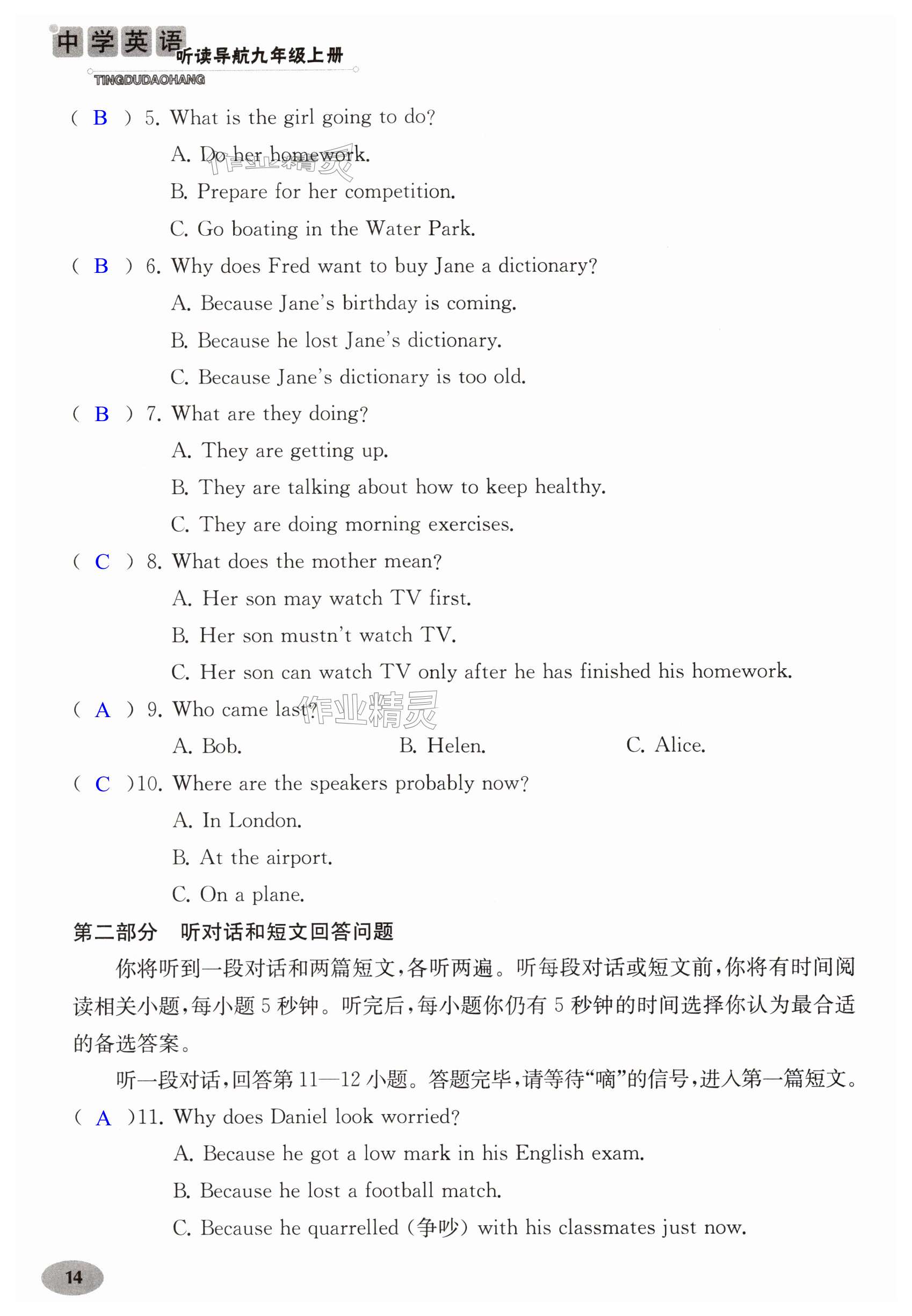 注:目前有些书本章节名称可能整理的还不是很完善,但都是按照顺序排列的,请同学们按照顺序仔细查找。练习册 2024年中学英语听读导航九年级上册译林版 答案主要是用来给同学们做完题方便对答案用的,请勿直接抄袭。