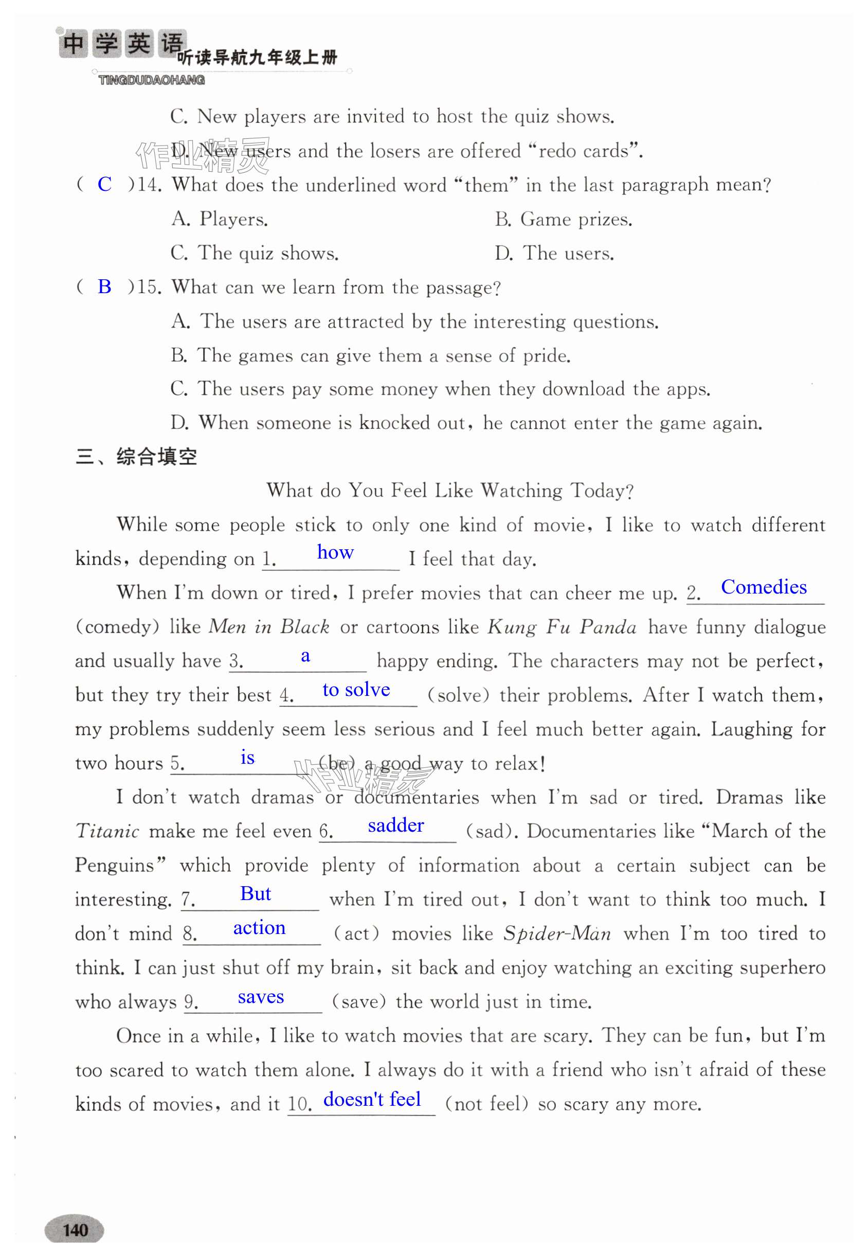 注:目前有些书本章节名称可能整理的还不是很完善,但都是按照顺序排列的,请同学们按照顺序仔细查找。练习册 2024年中学英语听读导航九年级上册译林版 答案主要是用来给同学们做完题方便对答案用的,请勿直接抄袭。