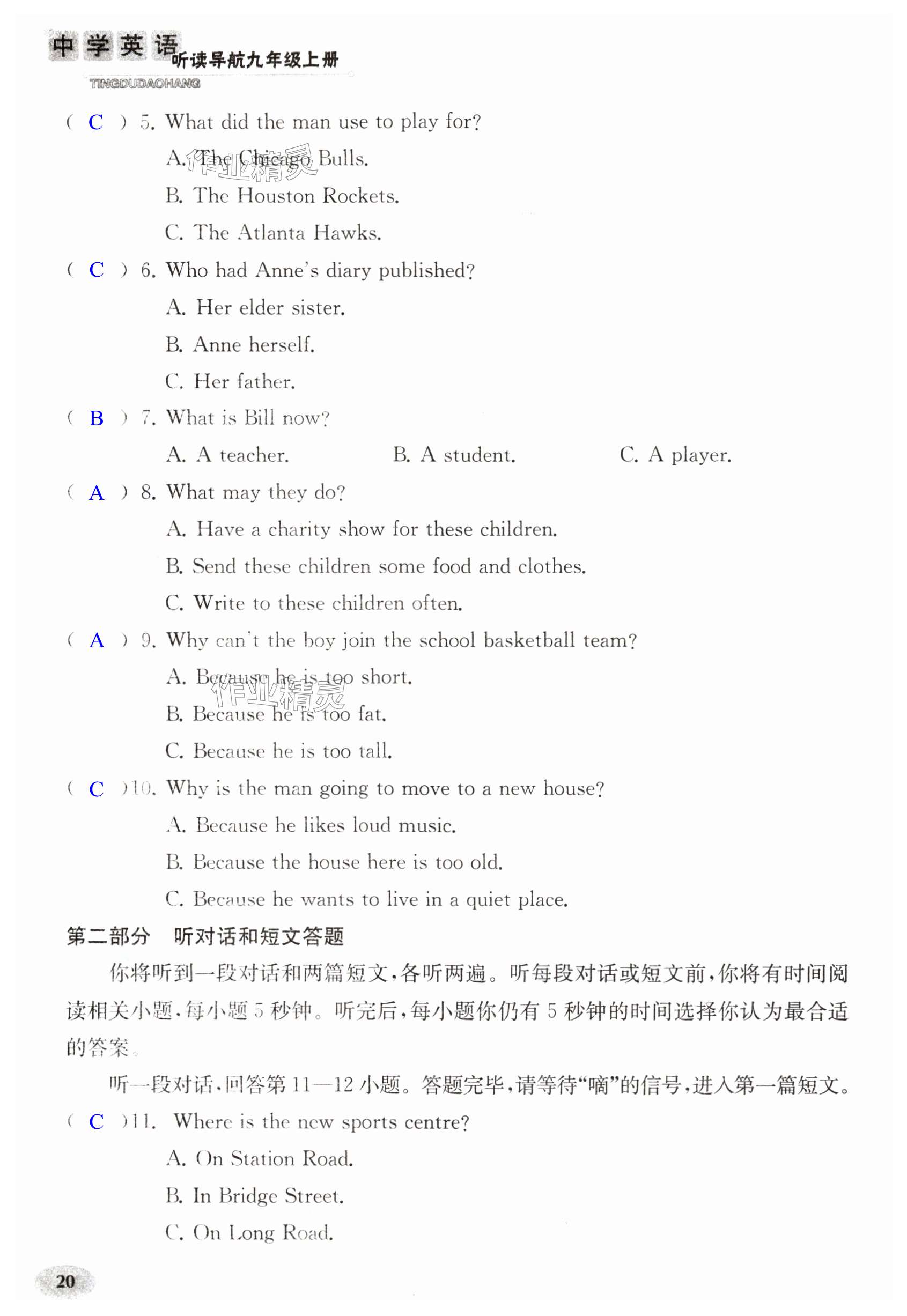 注:目前有些书本章节名称可能整理的还不是很完善,但都是按照顺序排列的,请同学们按照顺序仔细查找。练习册 2024年中学英语听读导航九年级上册译林版 答案主要是用来给同学们做完题方便对答案用的,请勿直接抄袭。