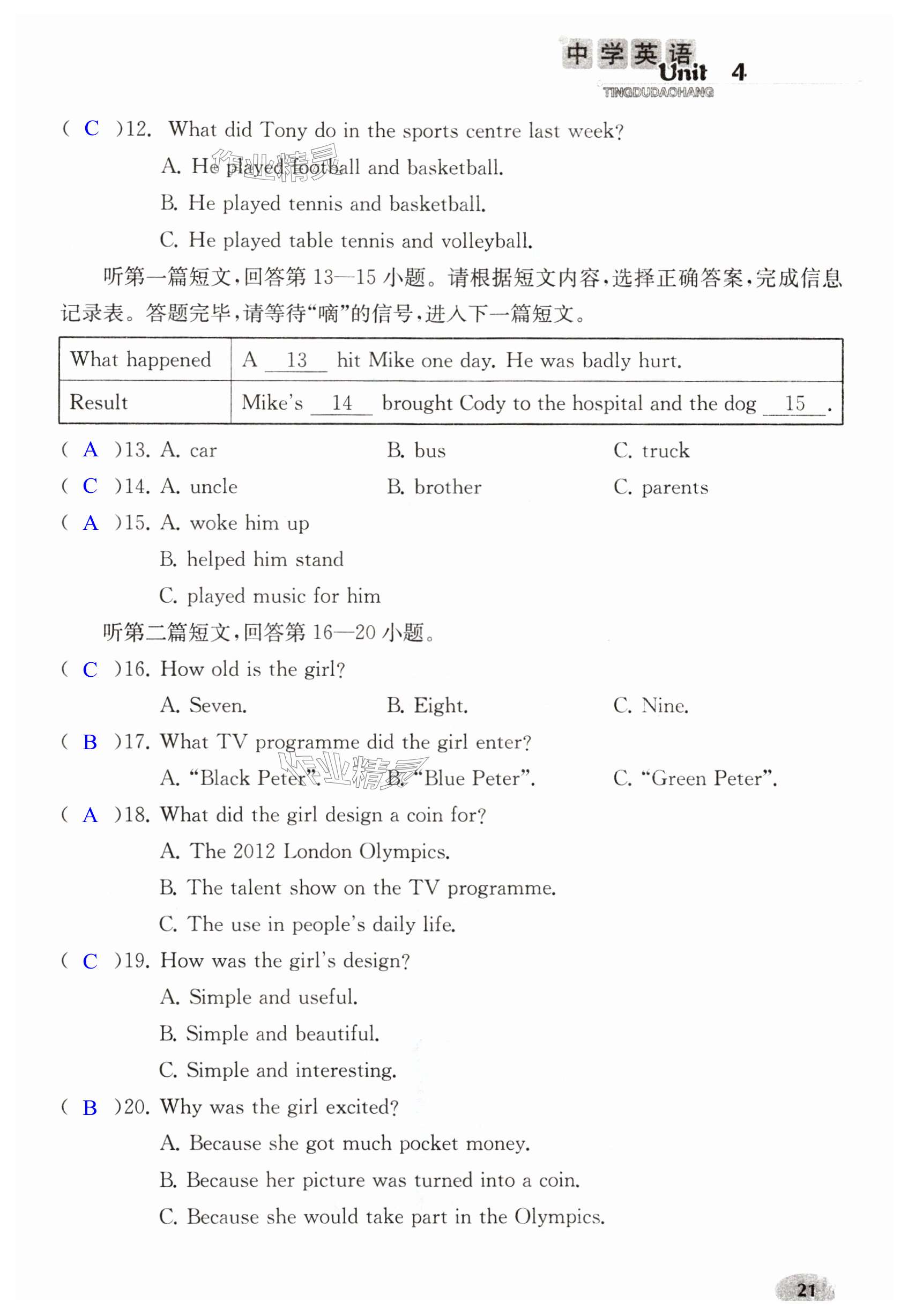 注:目前有些书本章节名称可能整理的还不是很完善,但都是按照顺序排列的,请同学们按照顺序仔细查找。练习册 2024年中学英语听读导航九年级上册译林版 答案主要是用来给同学们做完题方便对答案用的,请勿直接抄袭。