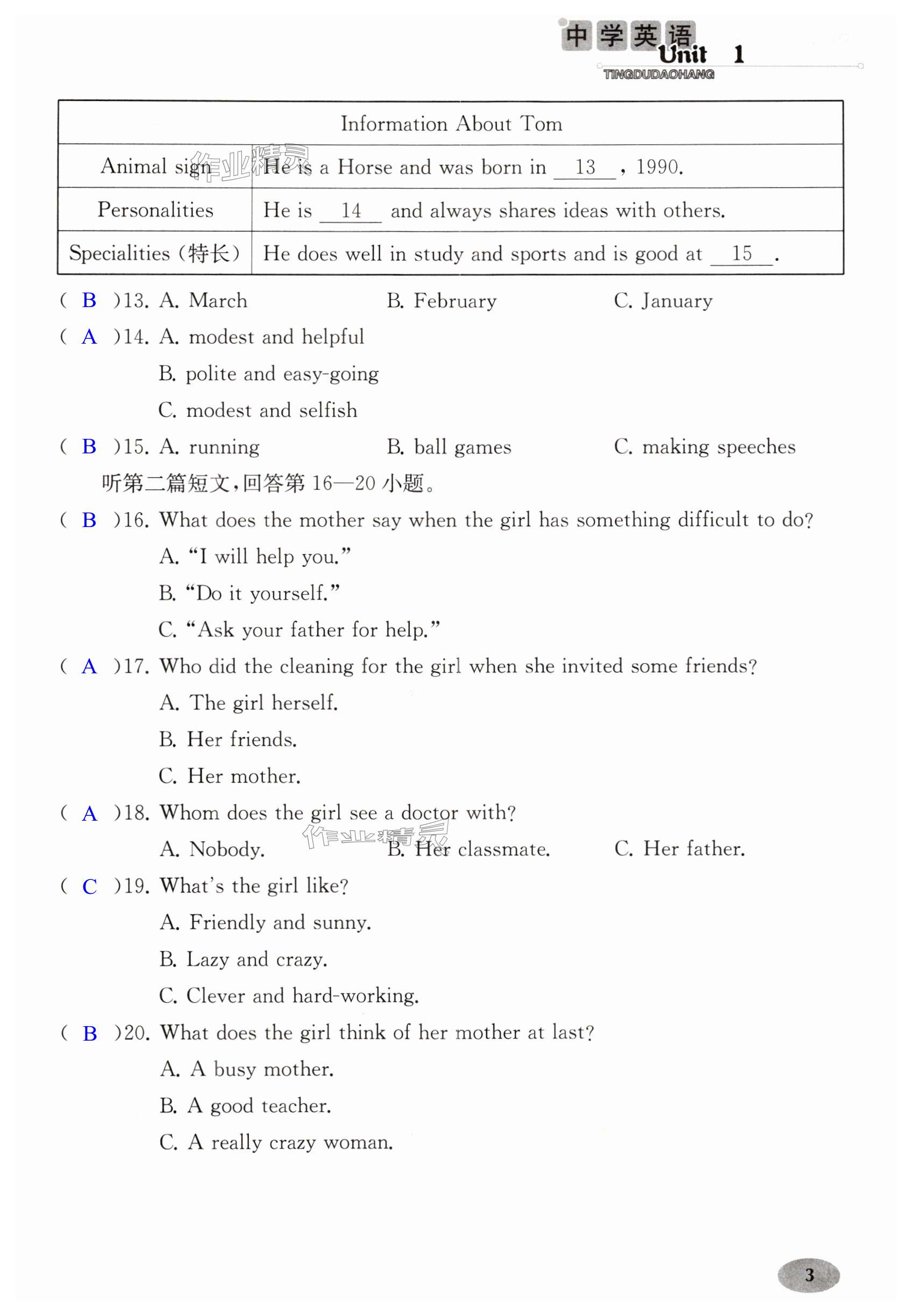 注:目前有些书本章节名称可能整理的还不是很完善,但都是按照顺序排列的,请同学们按照顺序仔细查找。练习册 2024年中学英语听读导航九年级上册译林版 答案主要是用来给同学们做完题方便对答案用的,请勿直接抄袭。
