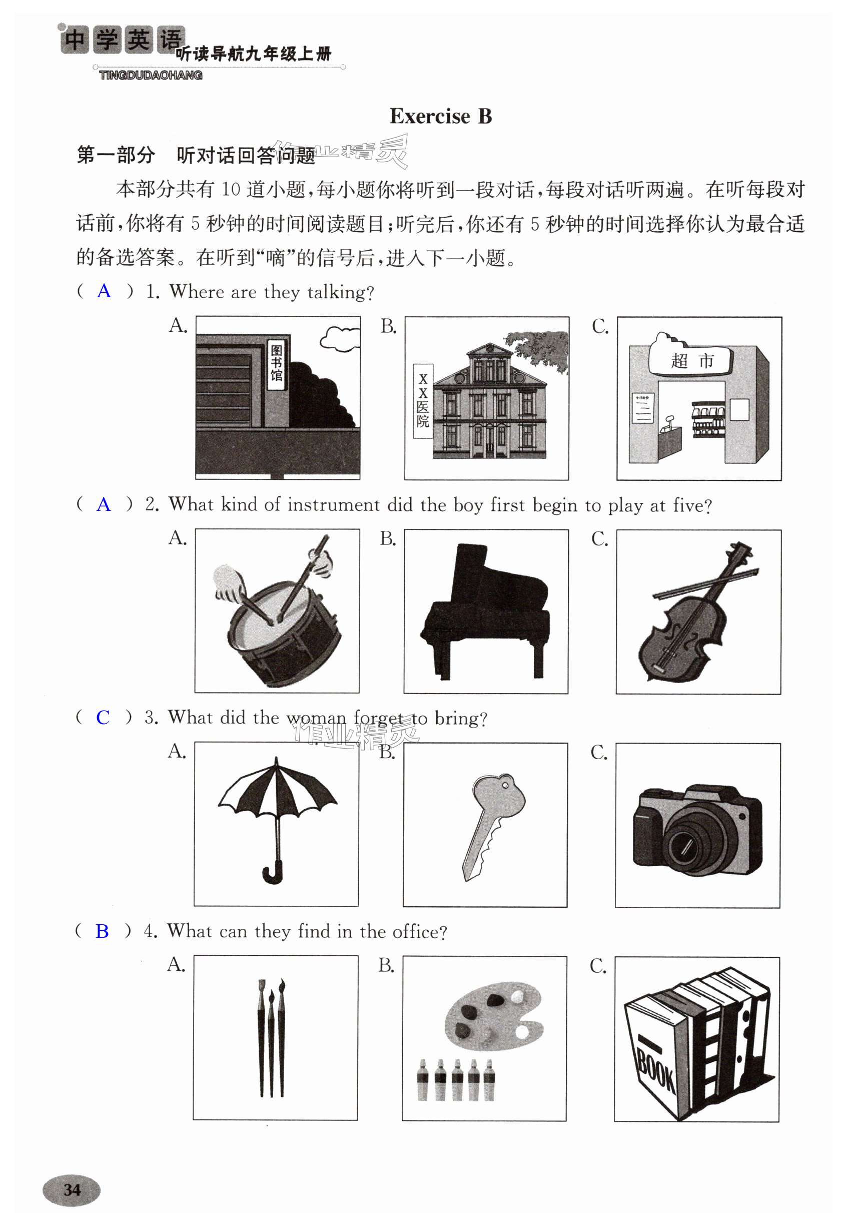 注:目前有些书本章节名称可能整理的还不是很完善,但都是按照顺序排列的,请同学们按照顺序仔细查找。练习册 2024年中学英语听读导航九年级上册译林版 答案主要是用来给同学们做完题方便对答案用的,请勿直接抄袭。