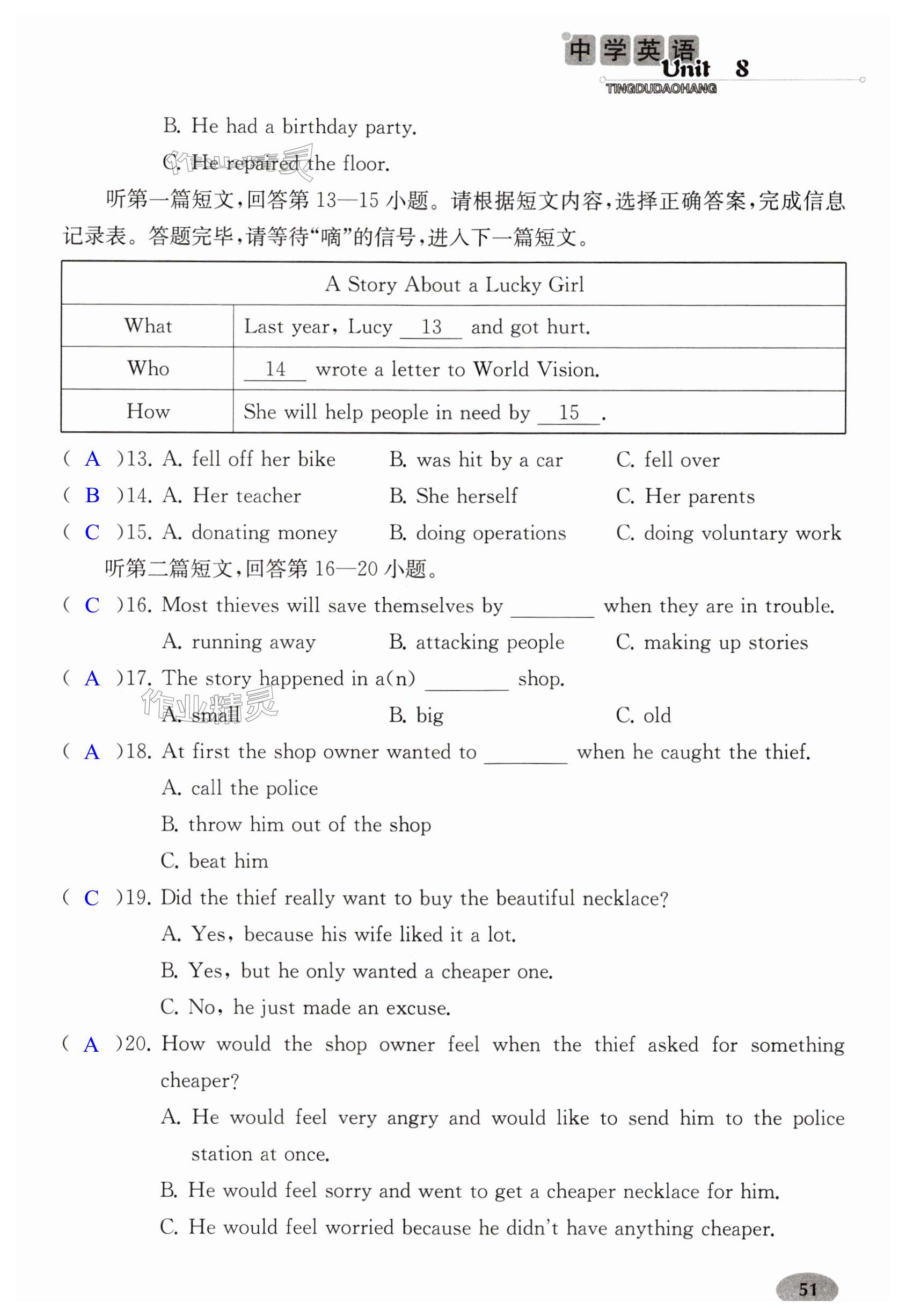 注:目前有些书本章节名称可能整理的还不是很完善,但都是按照顺序排列的,请同学们按照顺序仔细查找。练习册 2024年中学英语听读导航九年级上册译林版 答案主要是用来给同学们做完题方便对答案用的,请勿直接抄袭。