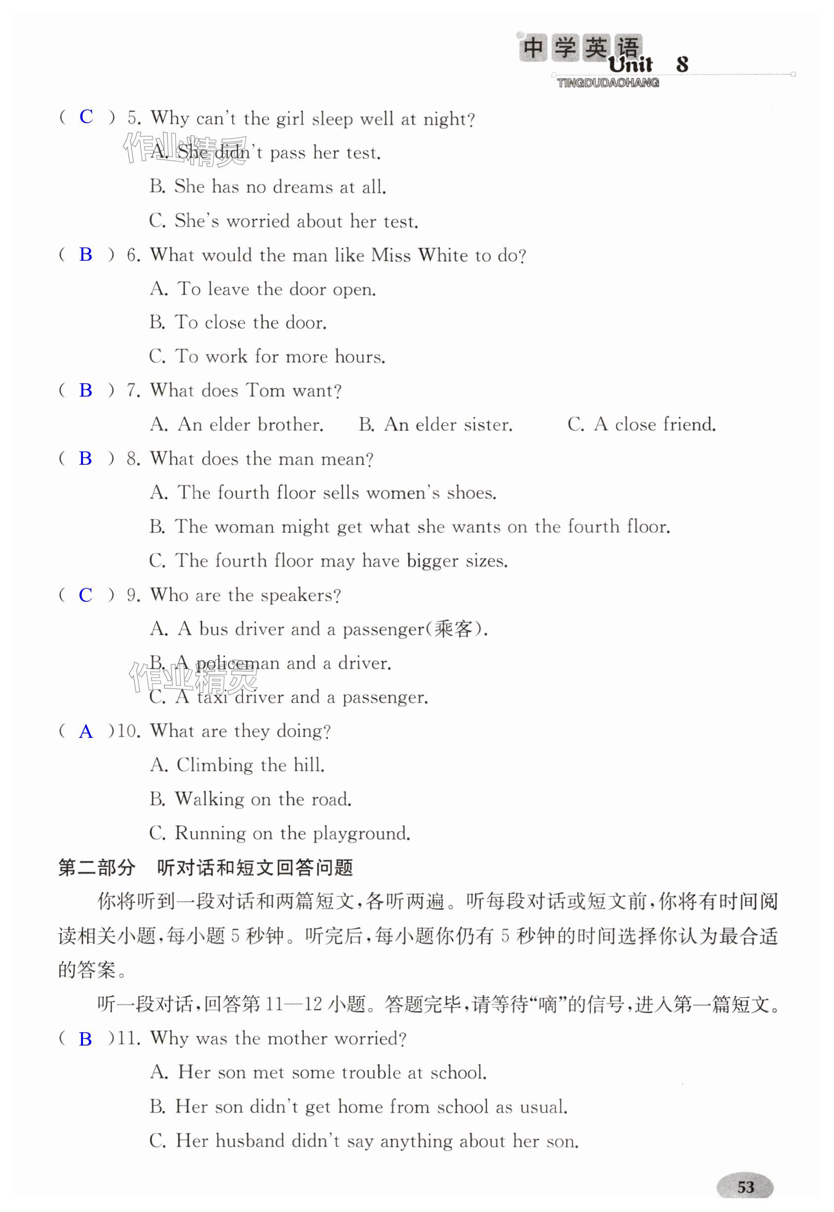 注:目前有些书本章节名称可能整理的还不是很完善,但都是按照顺序排列的,请同学们按照顺序仔细查找。练习册 2024年中学英语听读导航九年级上册译林版 答案主要是用来给同学们做完题方便对答案用的,请勿直接抄袭。