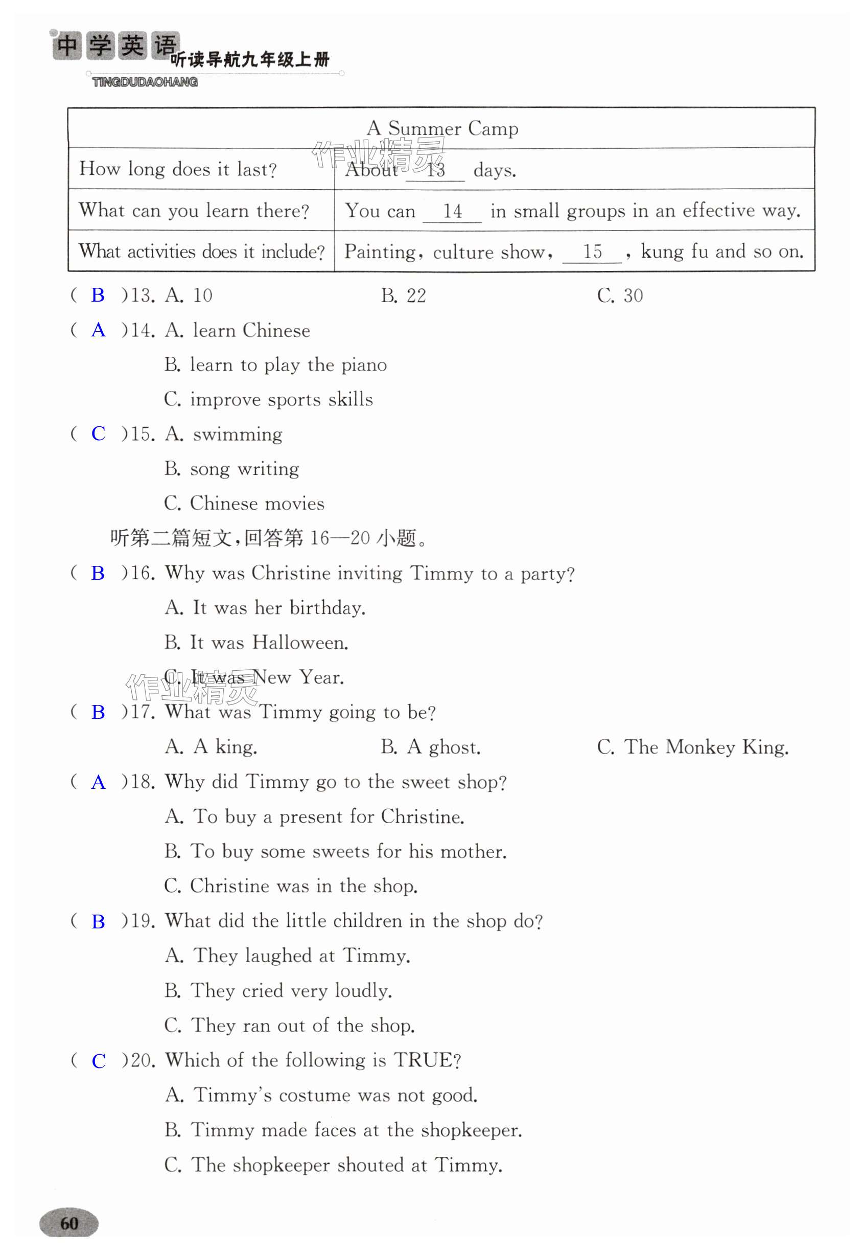 注:目前有些书本章节名称可能整理的还不是很完善,但都是按照顺序排列的,请同学们按照顺序仔细查找。练习册 2024年中学英语听读导航九年级上册译林版 答案主要是用来给同学们做完题方便对答案用的,请勿直接抄袭。