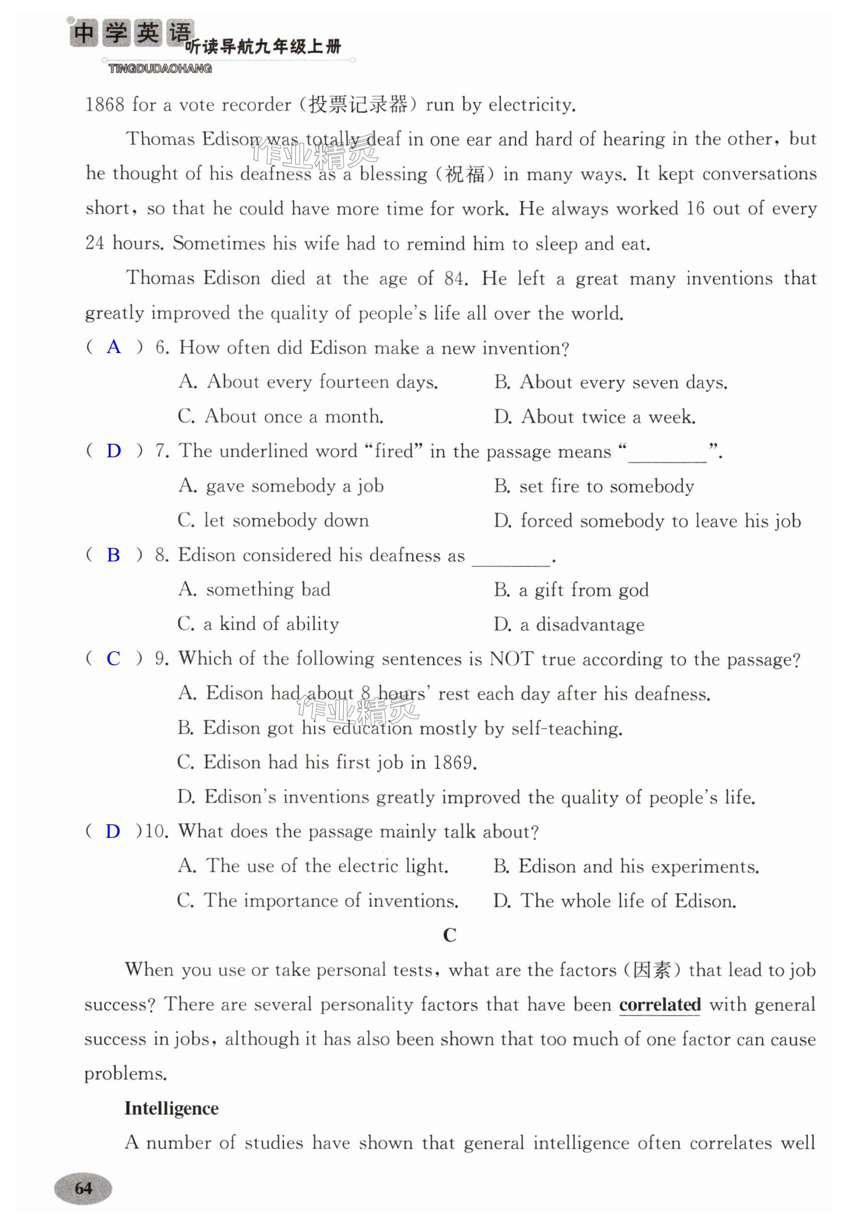 注:目前有些书本章节名称可能整理的还不是很完善,但都是按照顺序排列的,请同学们按照顺序仔细查找。练习册 2024年中学英语听读导航九年级上册译林版 答案主要是用来给同学们做完题方便对答案用的,请勿直接抄袭。