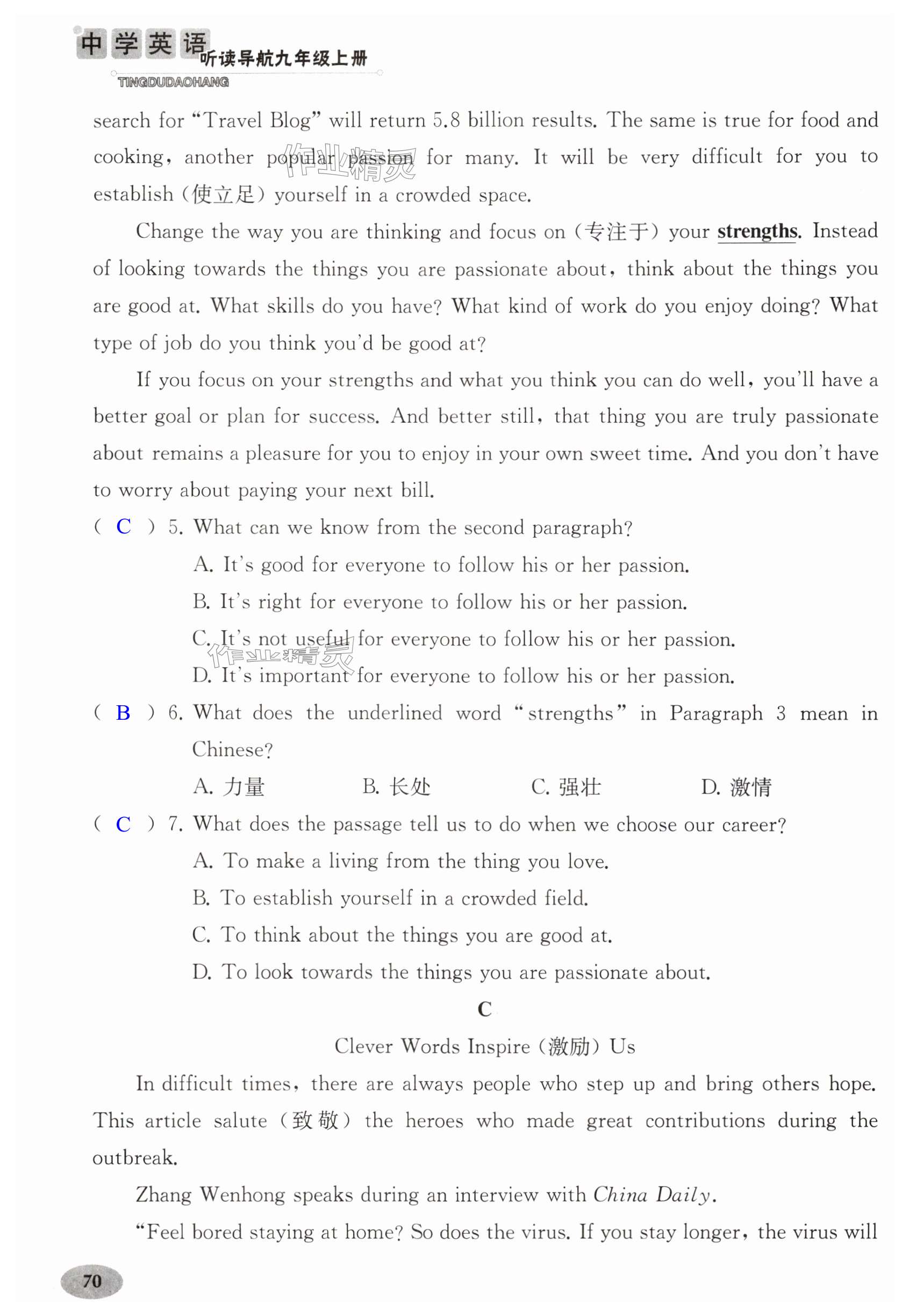 注:目前有些书本章节名称可能整理的还不是很完善,但都是按照顺序排列的,请同学们按照顺序仔细查找。练习册 2024年中学英语听读导航九年级上册译林版 答案主要是用来给同学们做完题方便对答案用的,请勿直接抄袭。