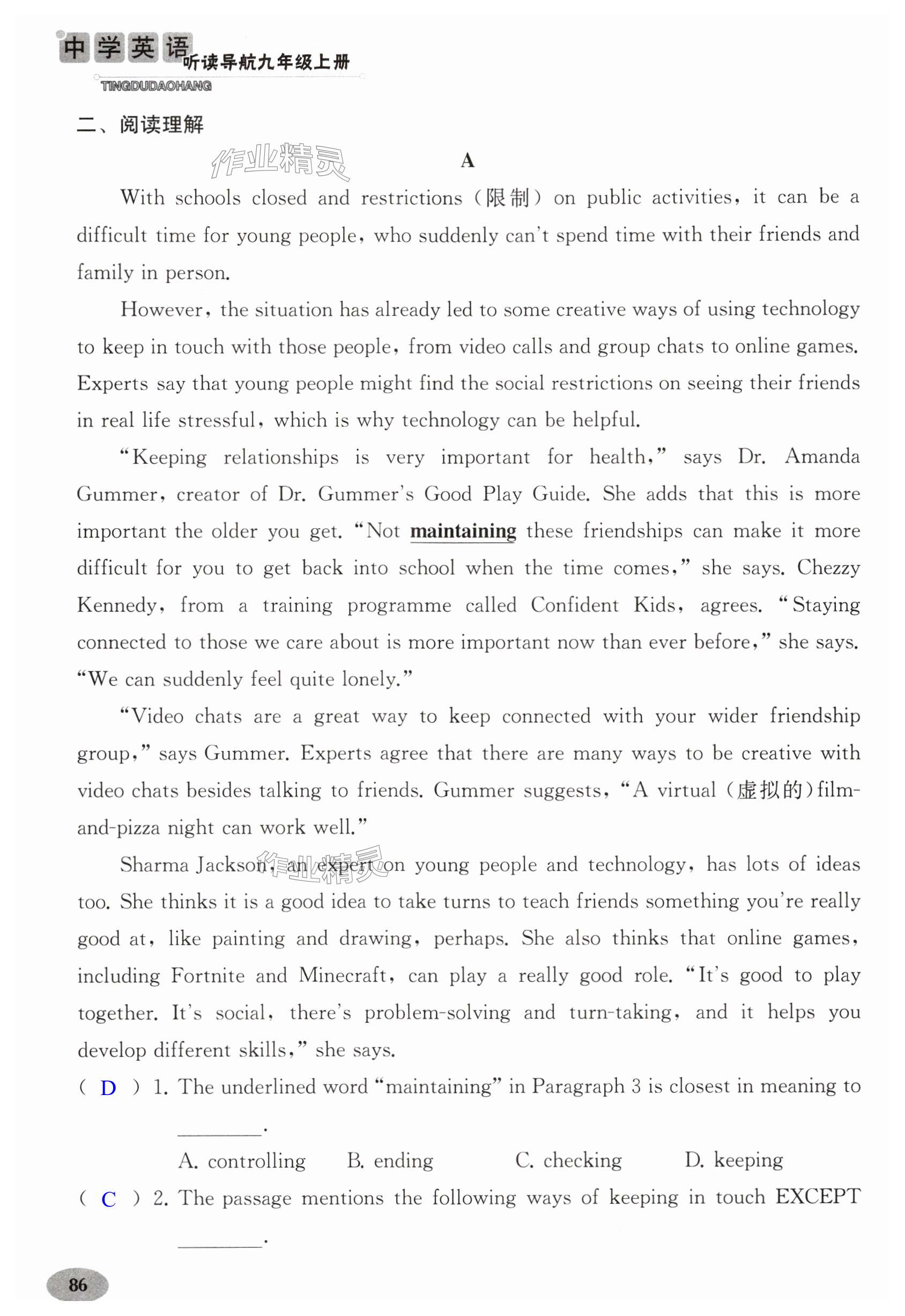 注:目前有些书本章节名称可能整理的还不是很完善,但都是按照顺序排列的,请同学们按照顺序仔细查找。练习册 2024年中学英语听读导航九年级上册译林版 答案主要是用来给同学们做完题方便对答案用的,请勿直接抄袭。