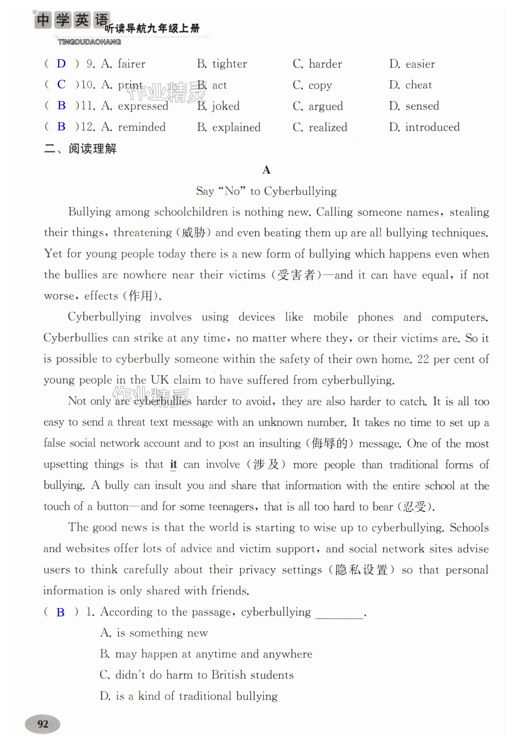 注:目前有些书本章节名称可能整理的还不是很完善,但都是按照顺序排列的,请同学们按照顺序仔细查找。练习册 2024年中学英语听读导航九年级上册译林版 答案主要是用来给同学们做完题方便对答案用的,请勿直接抄袭。
