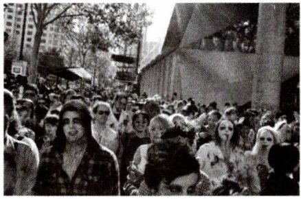 When I arrived, the parade (游行) already started. The "zombies" put on thick eyeshadow. Their bodies were covered in blood-red paint. If you didn't pay attention (注意), perhaps you would think they are real zombies!