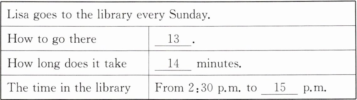 |The time in the library|From 2:30 p.m. to __15__ p.m.|