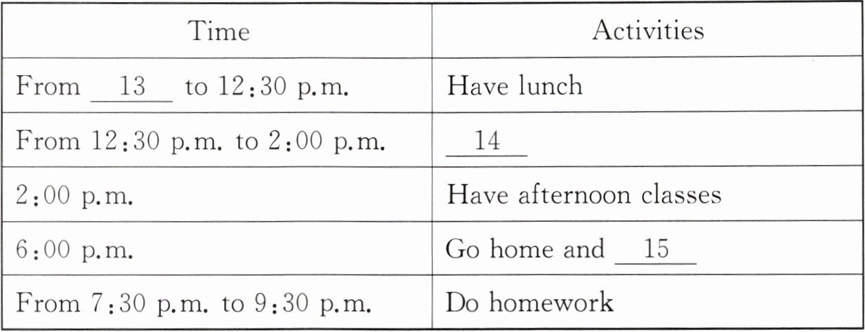 | From ___13___ to 12:30 p.m. | Have lunch |