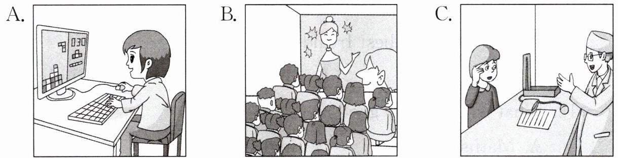本部分共有 10 道小题,每小题你将听到一段对话,每段对话听两遍。在听每段对话前,你将有 5 秒钟的时间阅读题目;听完后,你还有 5 秒钟的时间选择你认为最合适的答案。在听到“嘀”的信号后,进入下一小题。