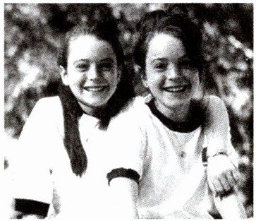 Look at the picture. The girls in the picture are Hallie Parker and Annie James. They are both 11 years old. They almost look the same. Yes,they are twins.
